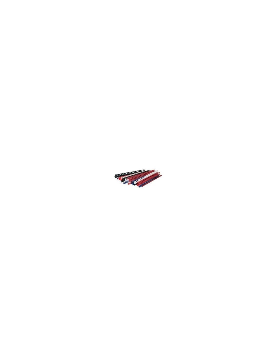 Universales para todaslas máquinas . 30 cm de largo (21 anillas). Permiten un corte fácil con tijeras. 4 colores: negro, blanco, rojo, azul. Caja de 100 unidades.
