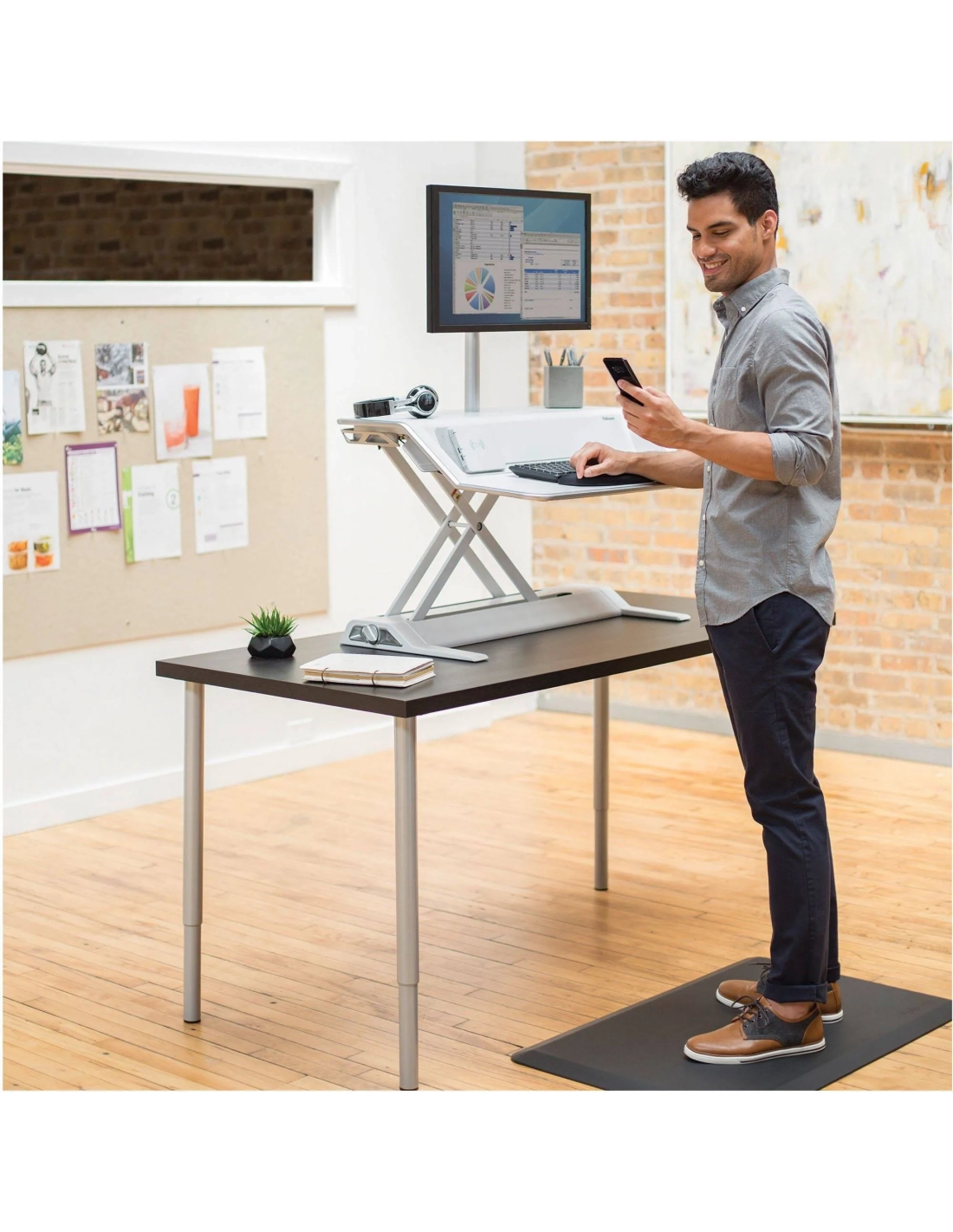Alfombra antifatiga Fellowes Reduce la fatiga al estar de pie gracias a su diseño ergonómico Favorece la comodidad de una posición erguida al estimular el movimiento de una manera sutil Ideal para utilizar junto con las estaciones de trabajo Sit-Stand para ayudar a combatir el sedentarismo laboral Bordes biselados para ayudar a combatir el sedentarismo laboral Medidas : alto 2 cm x ancho 91,5 cm x fondo 61 cm.