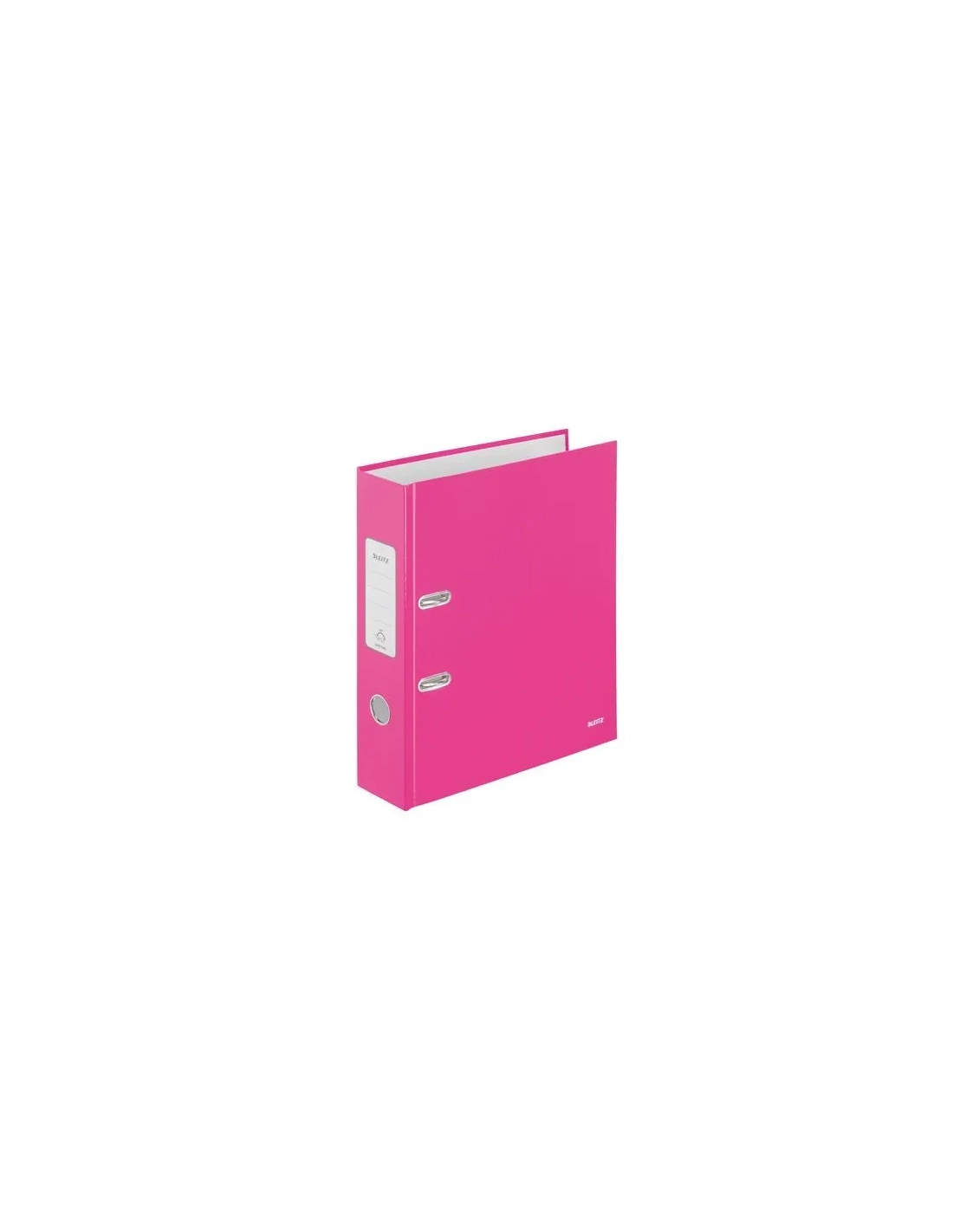 Amplia gama de colores brillantes y metálicos. Archivador de palanca fabricado en cartón forrado de papel brillante. Mecanismo metal cromado con palanca inclinable 180º. Lomo de 8 cm. Formato: Alt.31.8 x Anc.28.5 cm.Archivador wow 8cm rosa Leit