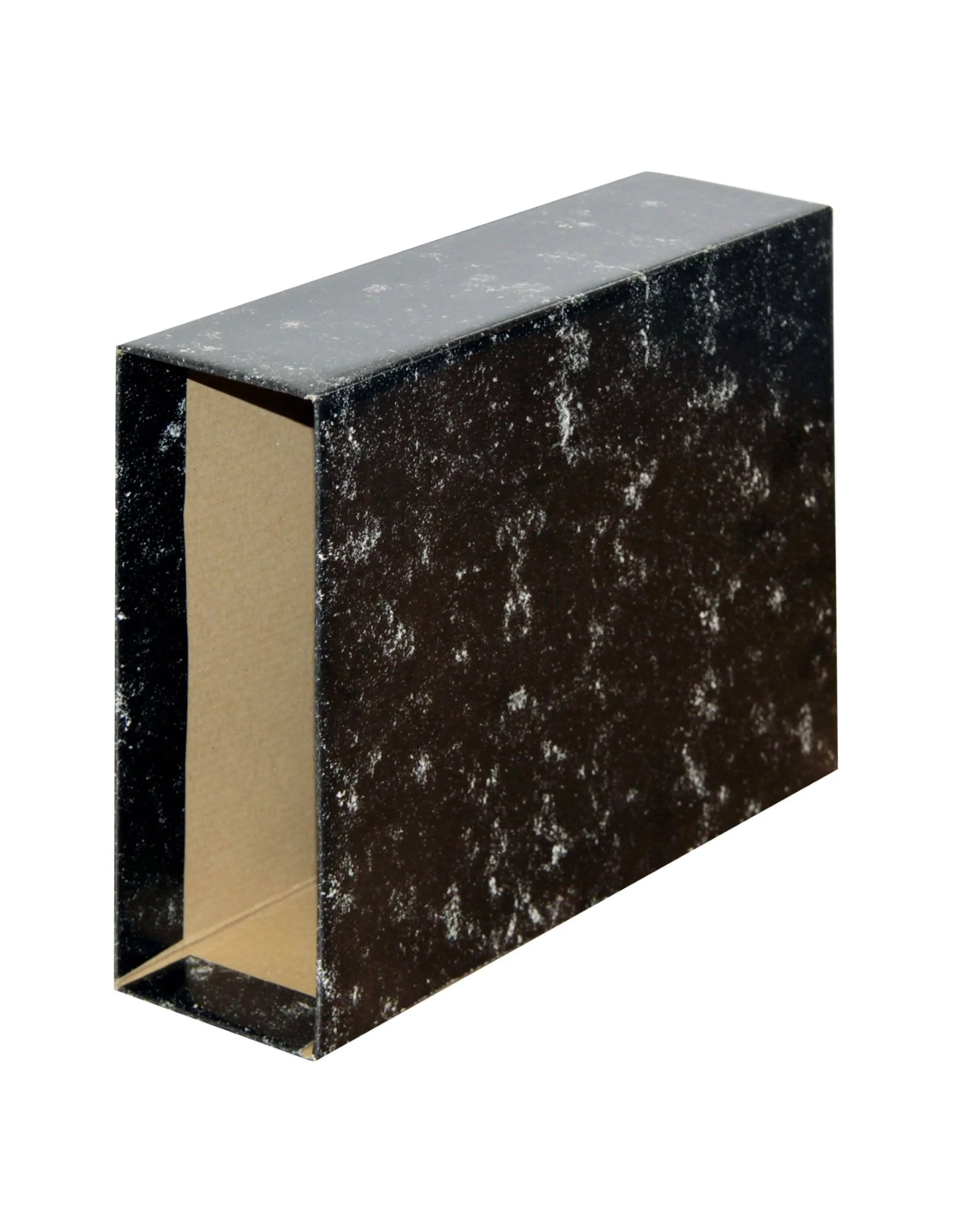 Fabricado en cartón, color gris jaspeado.