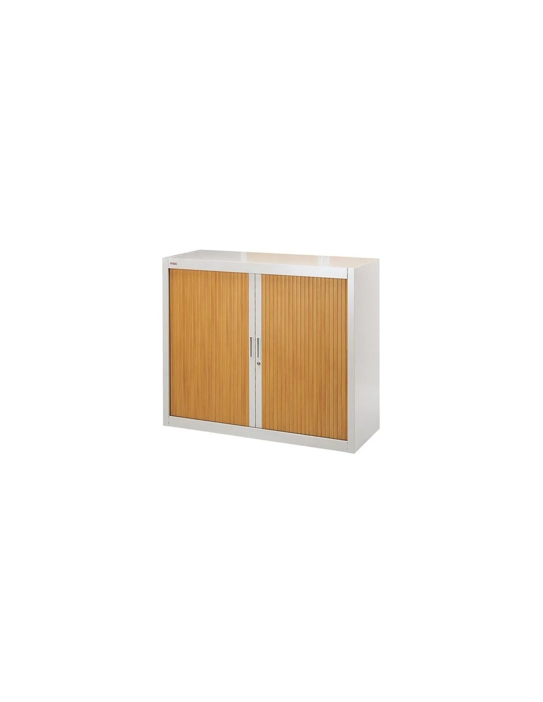 Armario de oficina metálico desmontable Alt. 100 x An. 120 cm color antracita Puerta persiana color haya,