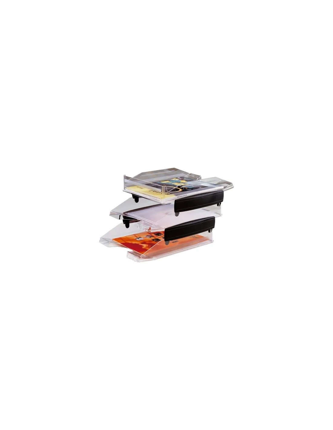 Práctico y funcional sistema formado por 2 elevadores, para aumentar la capacidad de las bandejas, impidiendo que los documentos puedan deslizarse hacia el exterior. Color: negro 02. Presentado en bolsa individual.