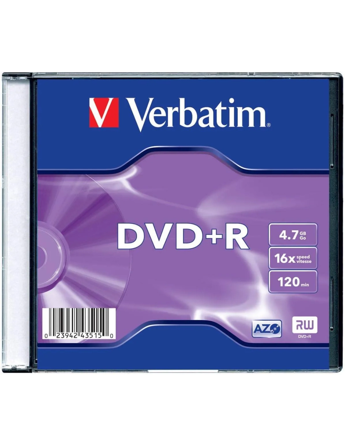 DvD+R Verbatim 4,7 Gb velocidad 16X duración de grabación 120 minutos para utilizar con grabadoras DVD+R / RW, tecnología AZO que proporciona alta calidad y fiabilidad de las imágenes y del sonido.