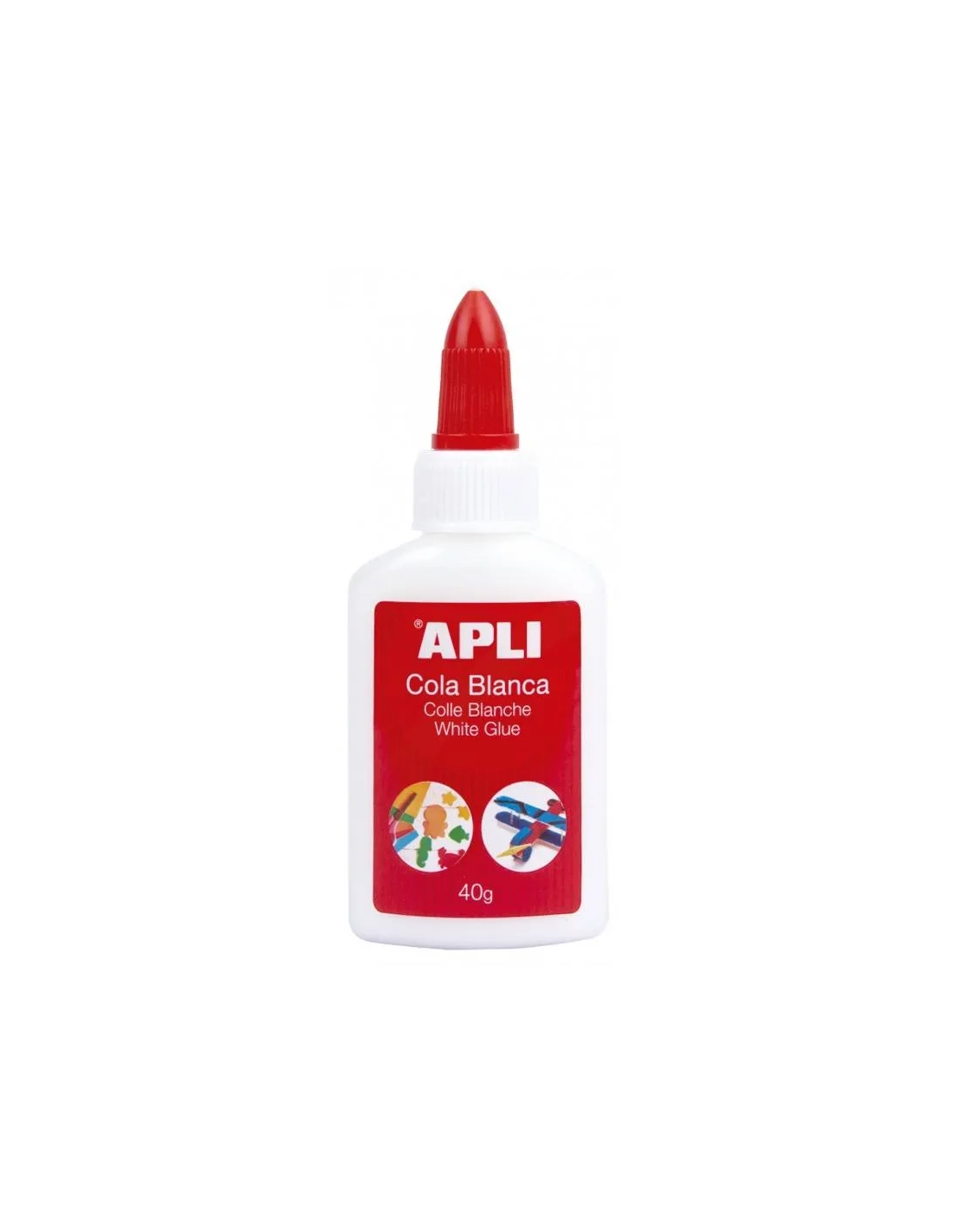 APLICola blanca de 40 g. Cola blanca líquida con un aplicador de punta y tapa superior no desmontable que permite una aplicación fácil y precisa. Fórmula libre de solventes y no tóxica. Apto para uso escolar, material seguro para el uso infantil, adecuado a la normativa. Cola blanca de máxima calidad, la boquilla no se seca.