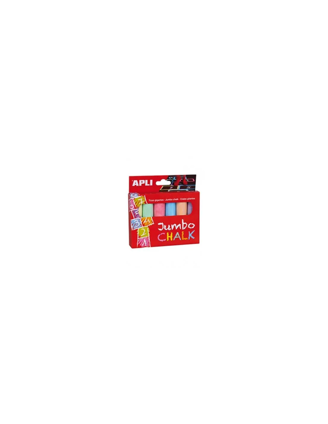 Caja de 6 tizas de colores redondas Jumbo Chalk de apli, se eliminan fácilmente con agua.