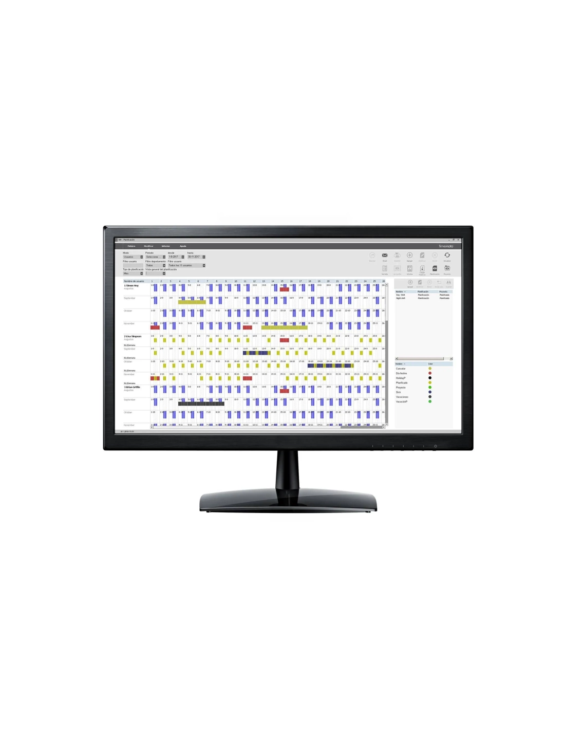 Se instala en un PC Datos de presencia en tiempo real Informes detallados Horarios de trabajo / Planificación Códigos de trabajo Informes de horas extras Clases de pago e informes de pago Exporta datos en formatos Excel, PDF, CSV, programas de nóminas Planificación de vacaciones Herramienta gráfica de planificación Cumple con el RGPD Garantiza el cumplimiento del nuevo art.34 del E.