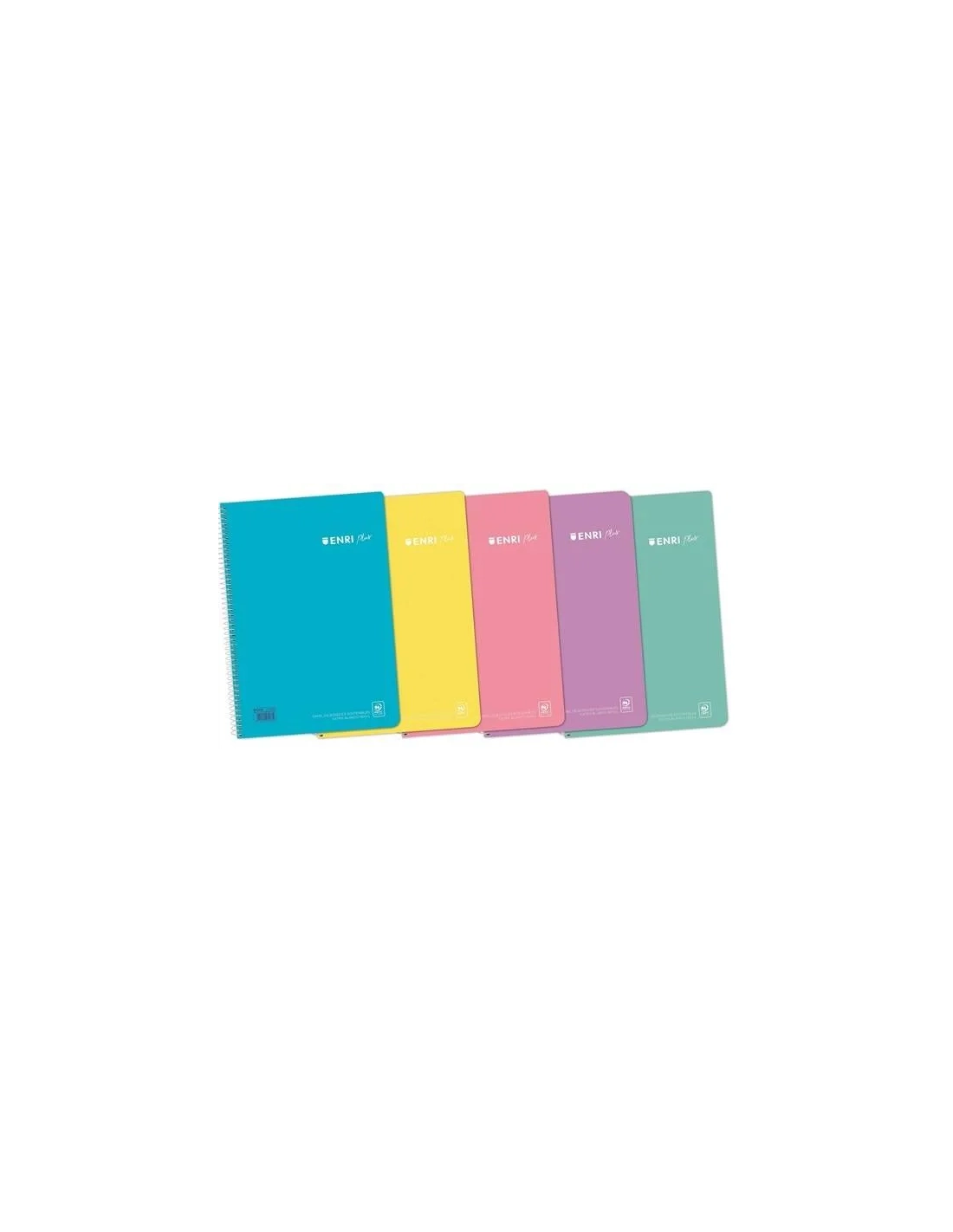Cuaderno espiral Enri tamaño folio 215 x 310 mm tapa de plástico, hojas cuadriculadas de 90 gramos con cuadrícula de 4x4mm. Colores pastel surtidos.