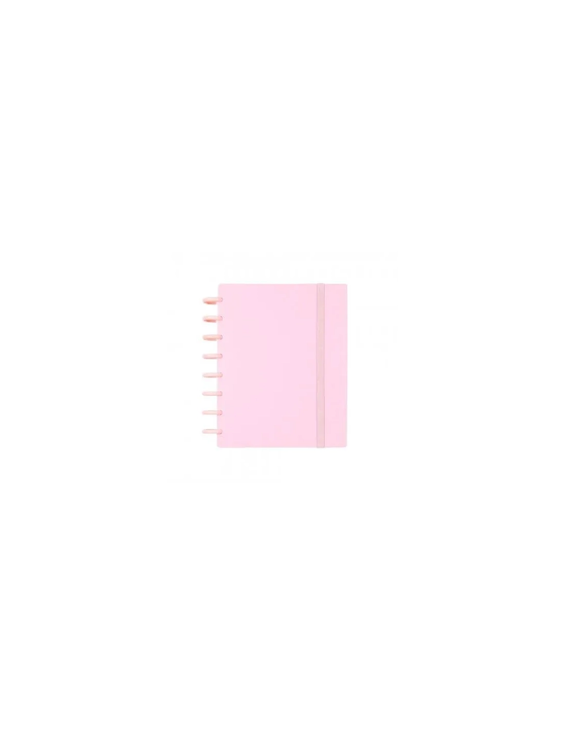 Cuaderno con 100 hojas de papel 100 gr calidad extra , goma elástica a juego y discos de plástico de 30 mm. ·