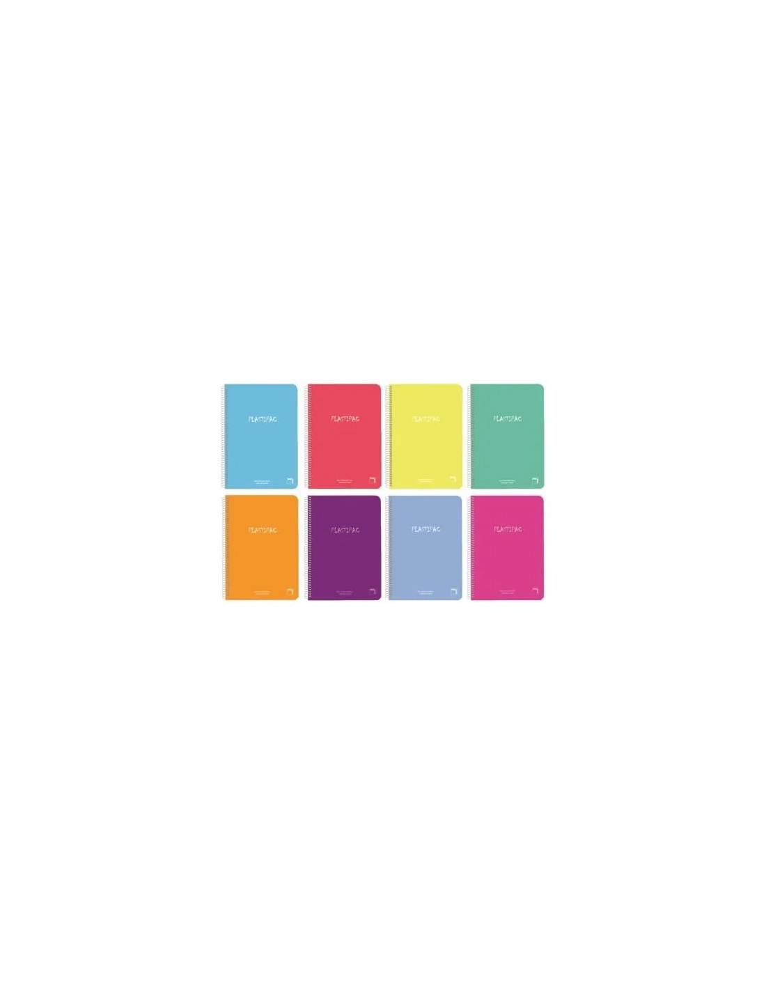 Cuaderno espiral folio con 80 hojas en papel de 90 gramos extra blancas lisas, tapas de polipropileno traslucidas, ,colores surtidos aleatorios