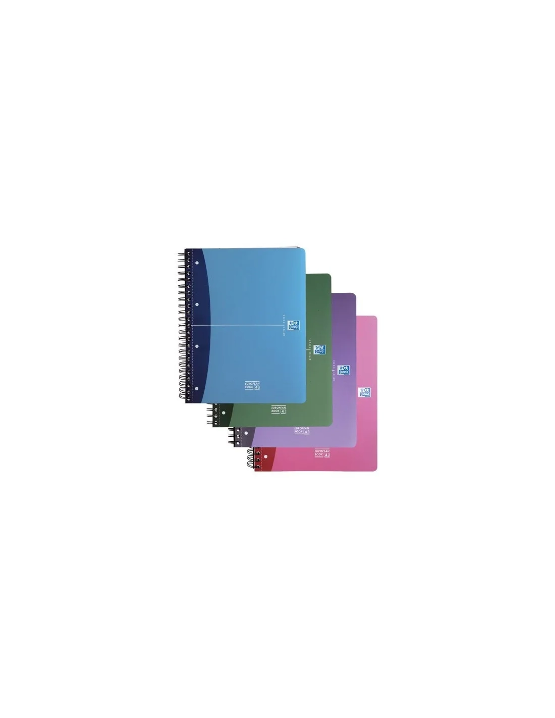 Cuaderno 100 hj espiral microperforado con 4 colores banda, cuadrícula de 5 mm, 3 separadores móviles y bolsa portahojas. Espiral doble y tapas encuadernadas de 4 colores surtidos. Papel 90 g/m2. Línea Oxford Office. DIN A4+.Cuaderno espiral Oxford european book A4+ 120h