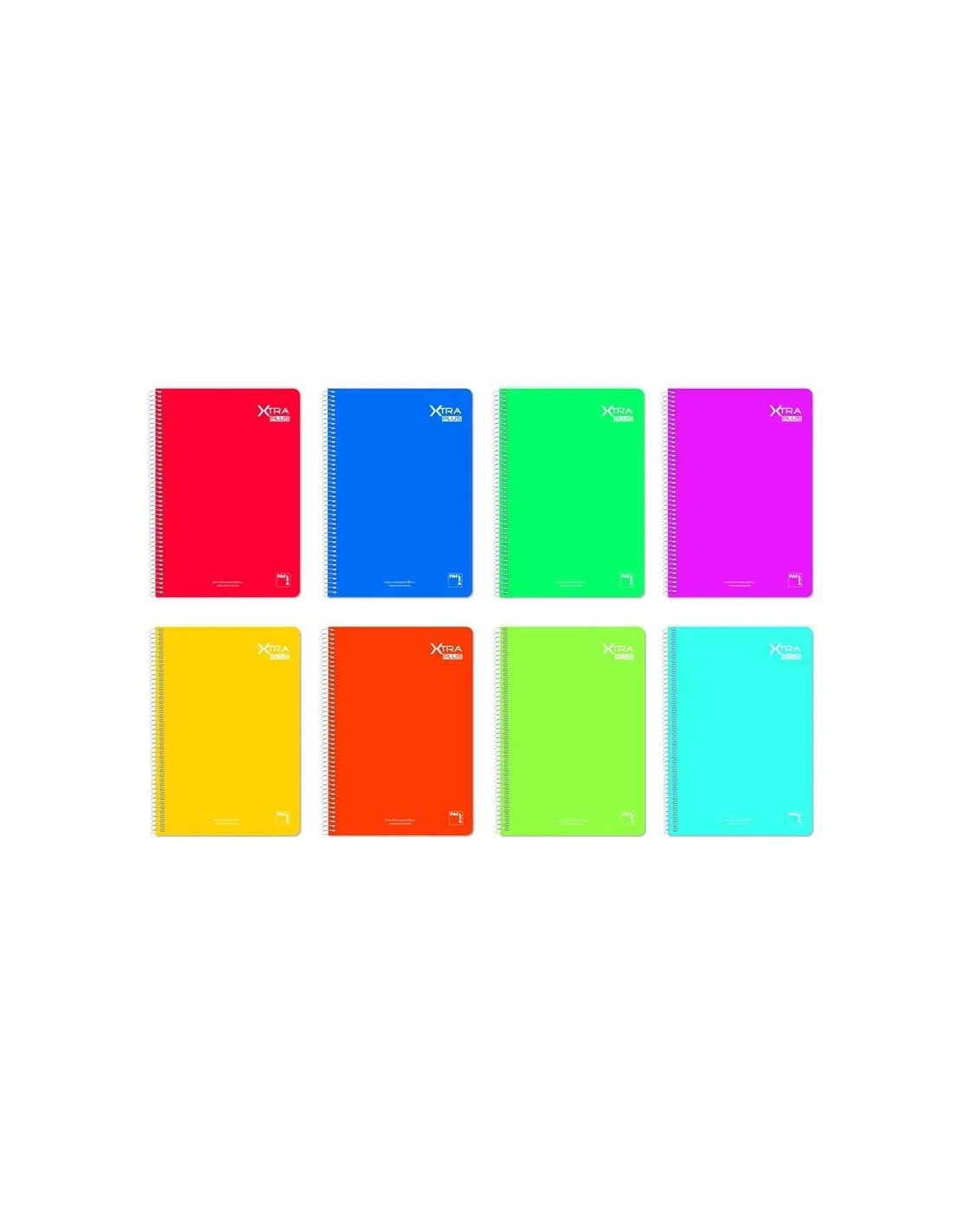 Cuaderno espiral simple tamaño folio Pacsa tapa rígida de cartón contracolado 80 hojas de papel extrablanco de 90 grms colores surtidos.