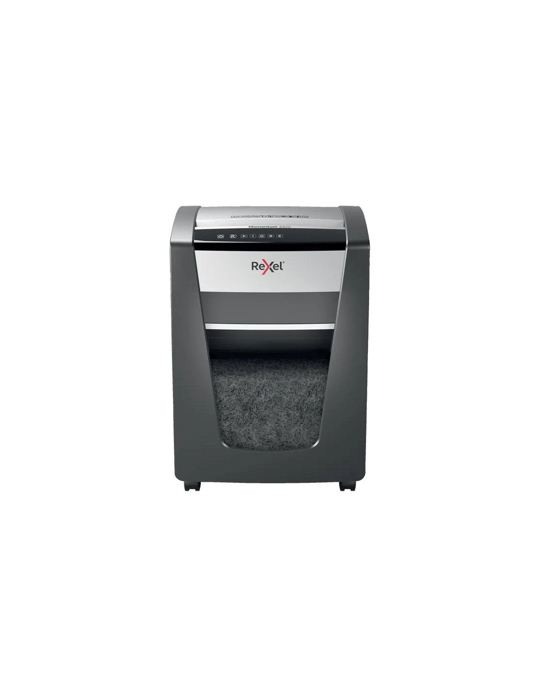 Destructora papel Rexel Momentum X420 destruye hasta 20 hojas de una vez, funciona ininterrumpidamente durante 4 horas y es ideal para oficinas pequeñas. La tecnología antiatasco del modelo X420 garantiza el funcionamiento ininterrumpido.