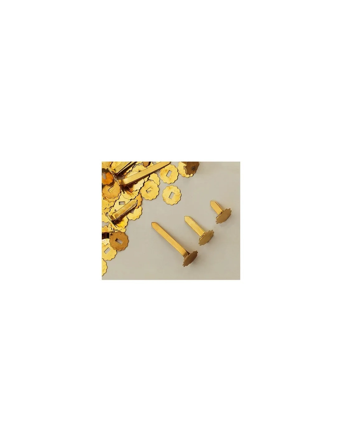 Cabeza plana de 12 mm de diámetro, con arandela. Tres largos disponibles. Longitud: 25 mm.100 encuadernadores laton nº25mm