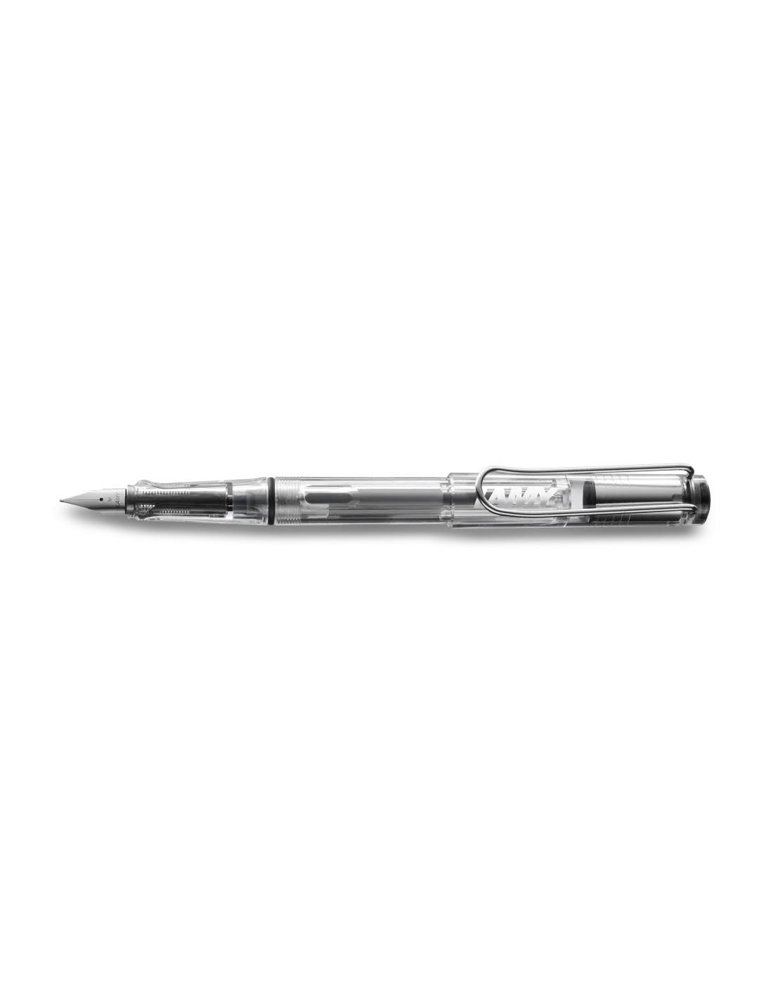 Estilográfica con cuerpo de plástico transparente, clip de metal y empuñadura ergonómica plumín de acero pulido utiliza cartuchos de tinta Lamy T10 y viene preparada para utilizar con convertidor Lamy Z28.
