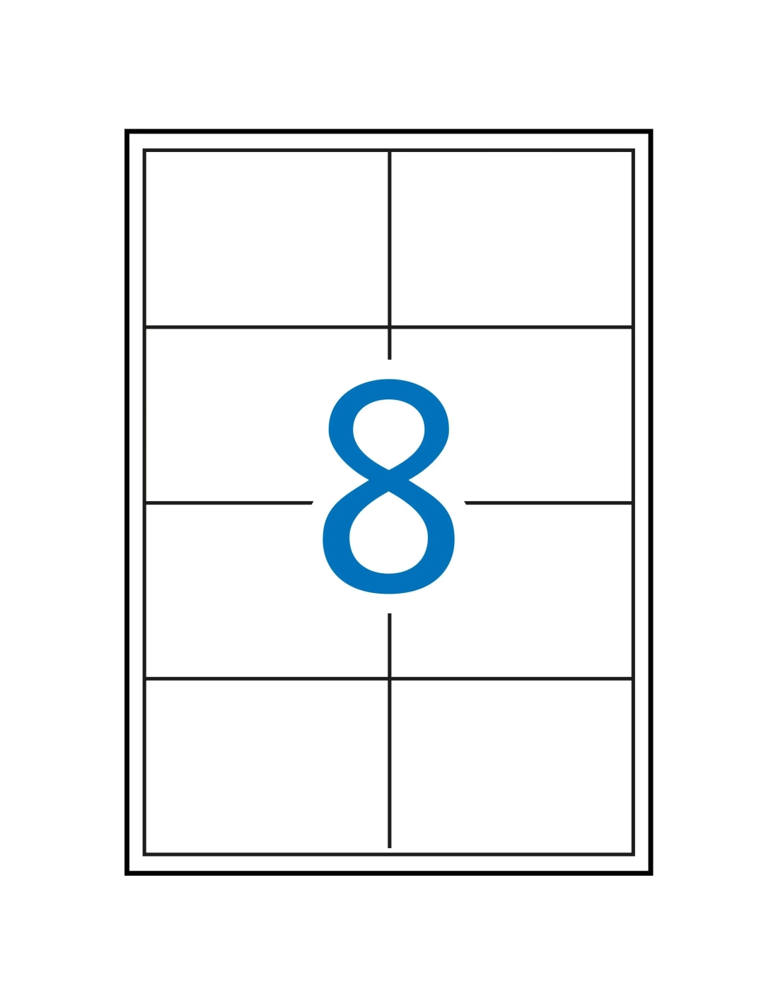 APLIPara fotocopiadoras e impresoras láser e ink-jet. Presentadas en hojas DIN A4 con salidas de 1, 2, 3, 4 o 5 tiras. Salida: 2. Mod. APLI: 01291. Cantidad: 800. Medidas (mm): 97 x 67,7. Formato: 100 hojas. Cantos: Rectos.