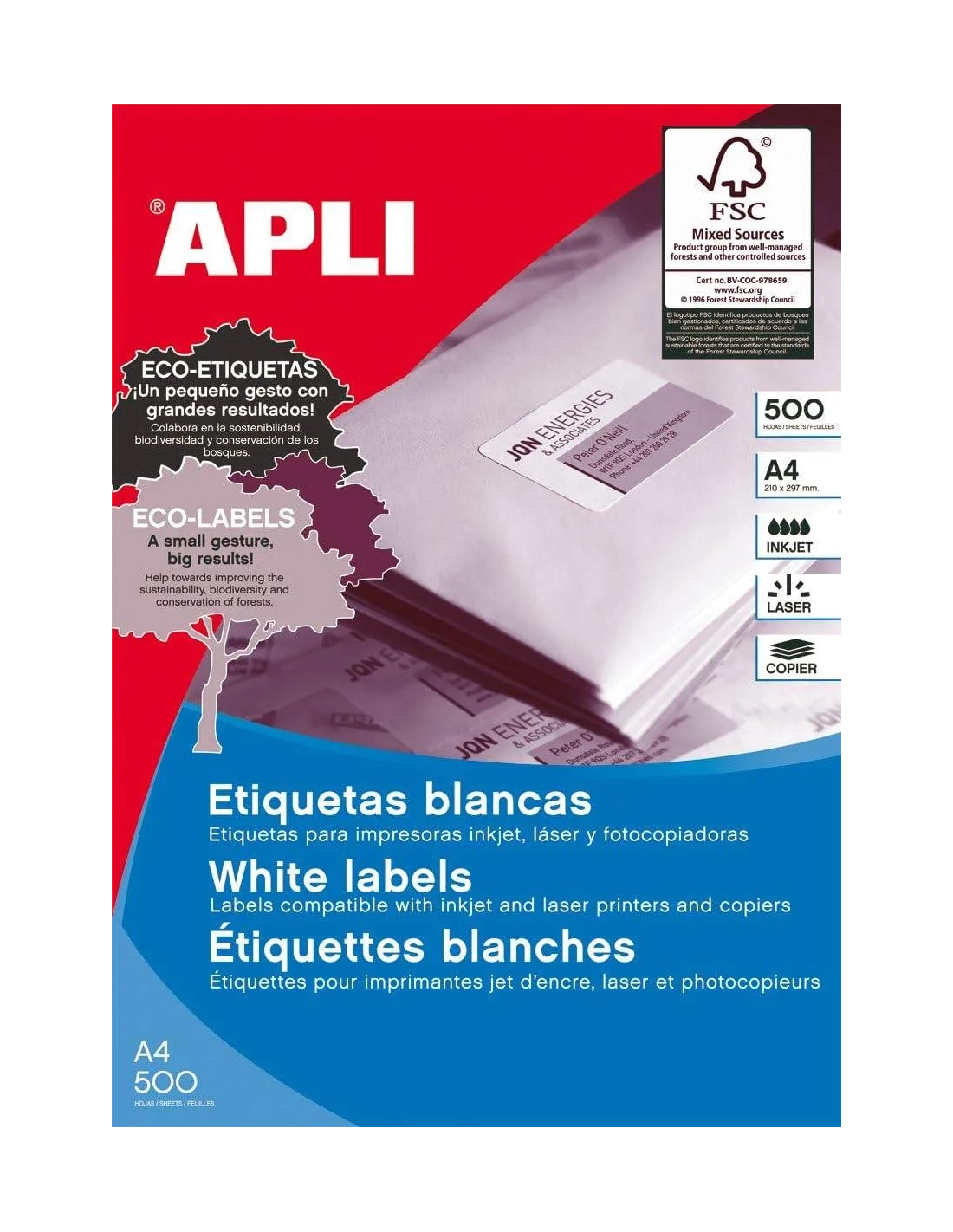 Etiquetas Apli blancas adhesivo permanente imprimibles, Inkjet , Laser, Copy fotocopiadora cantos rectos , ideal para sobres y paquetes Etiqueta blanca cantos rectos con adhesivo permanente para múltiples usos.
