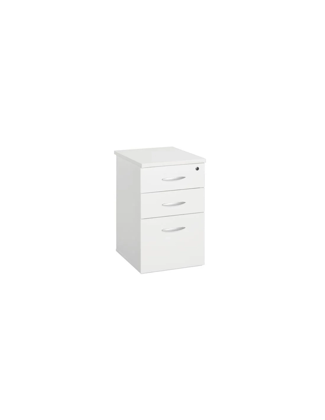 Cajonera para mesa de oficina tablero de paneles de partículas con revestimiento melaminado antirayaduras y antirreflejos . Cierre centralizado (incluye 2 llaves). Tirador metálico color aluminio. Incluye bandeja portalápices.