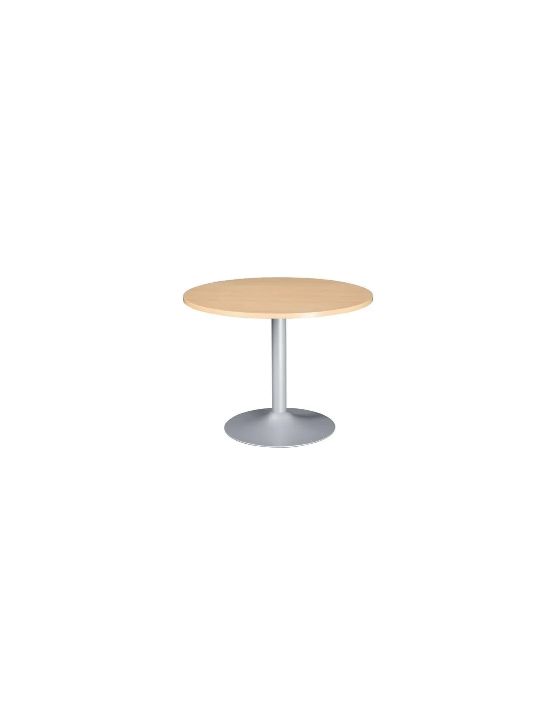 Mesa redonda de 120 cm de diámetro con pata columna metálica y base circular Excellens Mesa de oficina redonda fabricada de tablero de paneles de partículas de melamina de alta densidad, 25 mm de grosor, cantos de PVC antichoque de 3 mm pata metálica en columna lacada epoxi con base circular de 60 cm Mesa de oficina redonda ideal para reuniones, sala de espera o el despacho de tu oficina.