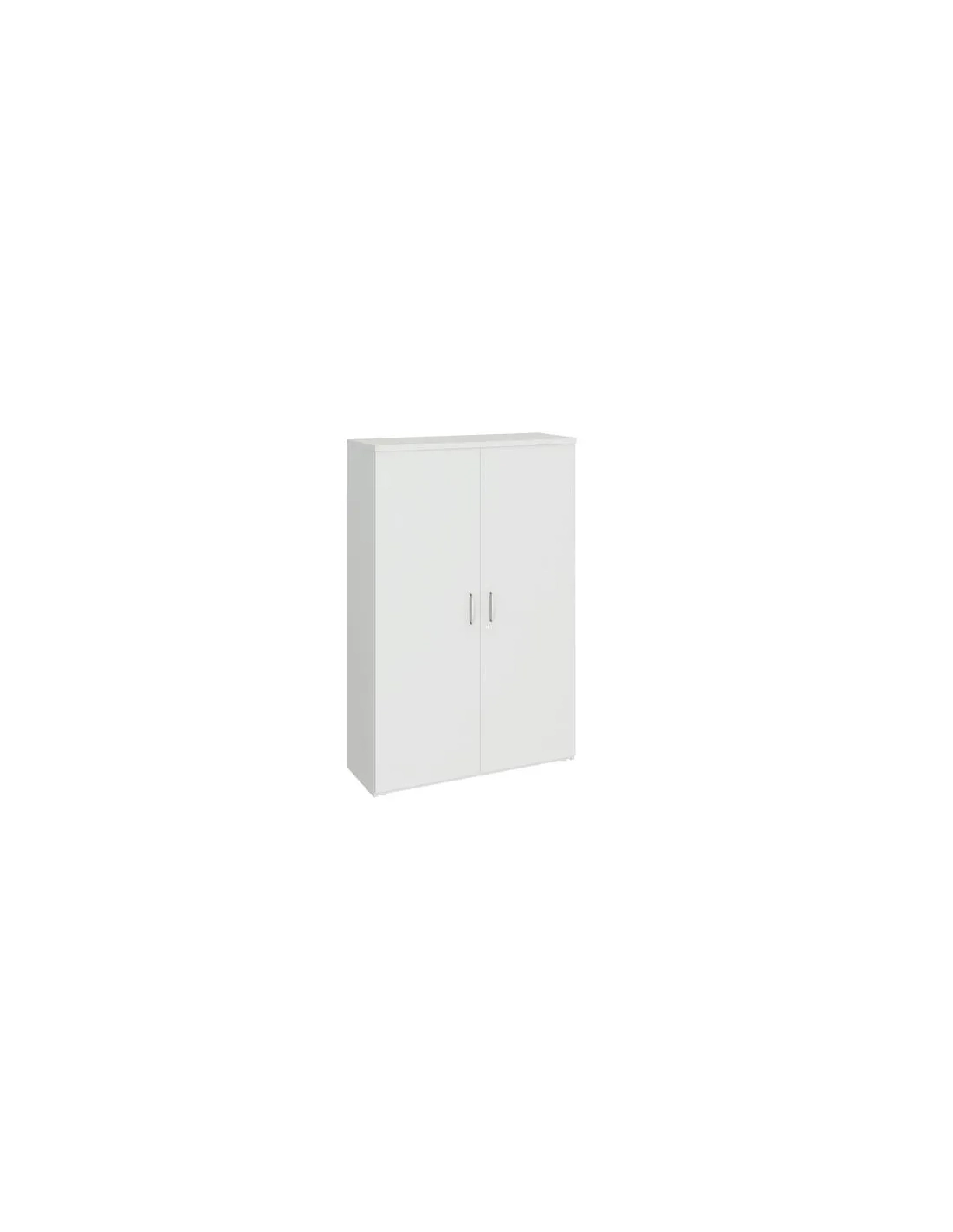 Armario alto excellens extra ancho, estructura de paneles de partículas melaminadas con cuatro baldas metálicas 3 regulable en altura y 1 fija Armario alto con puertas, Medidas totales : Alt 182 x An 120 x Fon 46 cm. Utiles : An 116 x Fon 41 cm. Armario alto con puertas batientes y 2 juegos de llaves con cuatro estantes metálicos adaptados para carpetas colgantes, capacidad para 464 carpetas