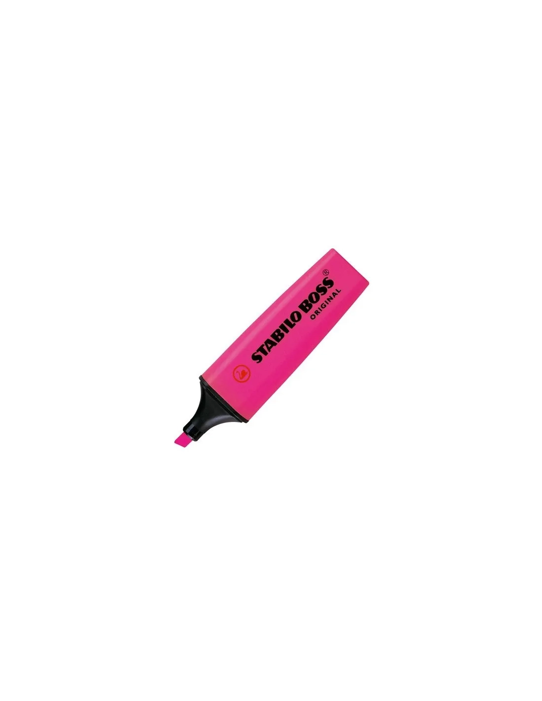 Marcador fluorescente con punta biselada. Ancho de trazo de 2 a 5 mm. Tinta universal con base al agua resistente a la luz en todo tipo de papel-normal-fax-fotocopia. Recargable. Larga duracion aún sin el capuchon. Color: Rosa.Marcador Stabilo Boss Original. Variedad de colores para resaltar y subrayas los textos. Punta biselada de 2 a 5 mm