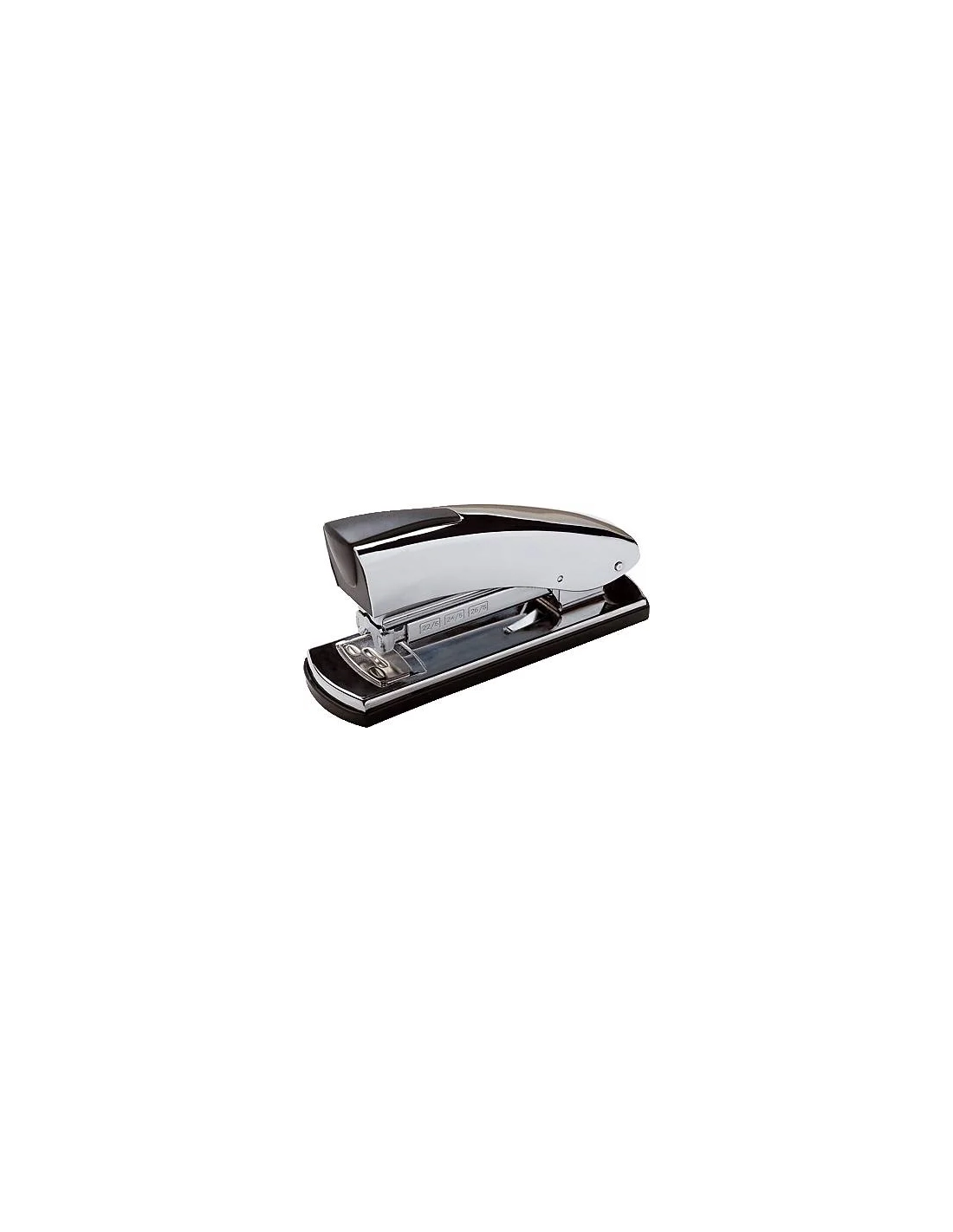 Grapadora metálica. Cargador doble guía antiatasco. Carga frontal automática con cubeta de plástico antideslizante en la base. Boca reforzada. Grapado: Cerrado/abierto/clavado. Prof: 72 mm. nº de hojas: 30. Grapas: 70: 22-24/6; 26/6. Cromada.