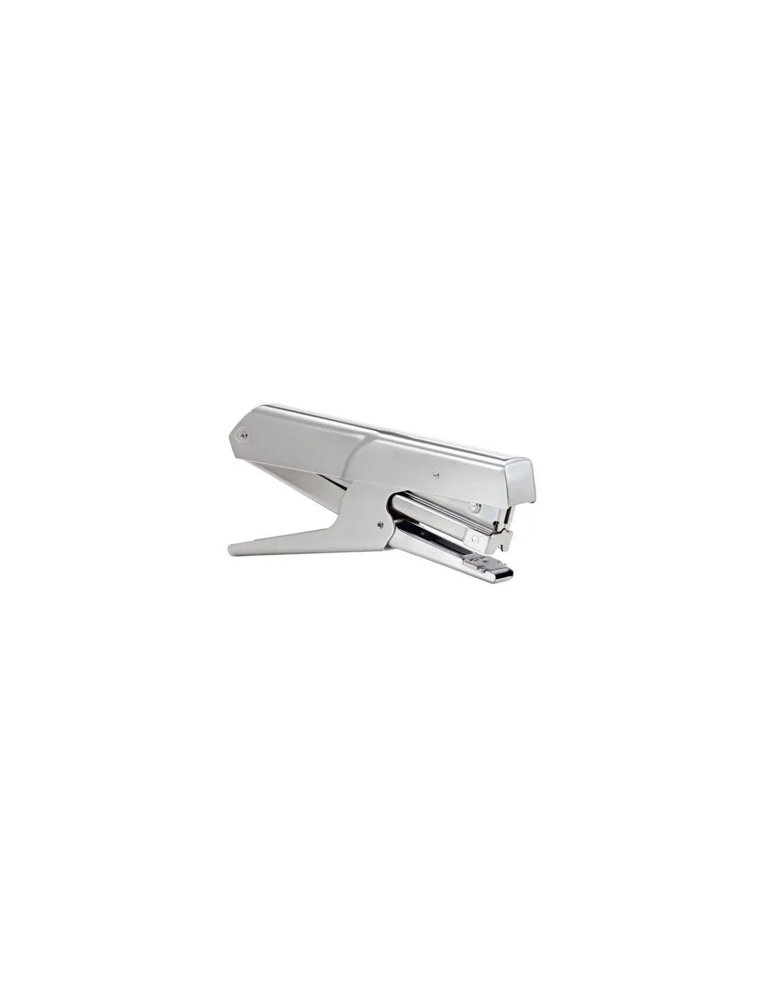 Grapadora de tenaza totalmente metálica. Acabado cromado y lacado en negro. Profundidad de entrada del papel 5 cm