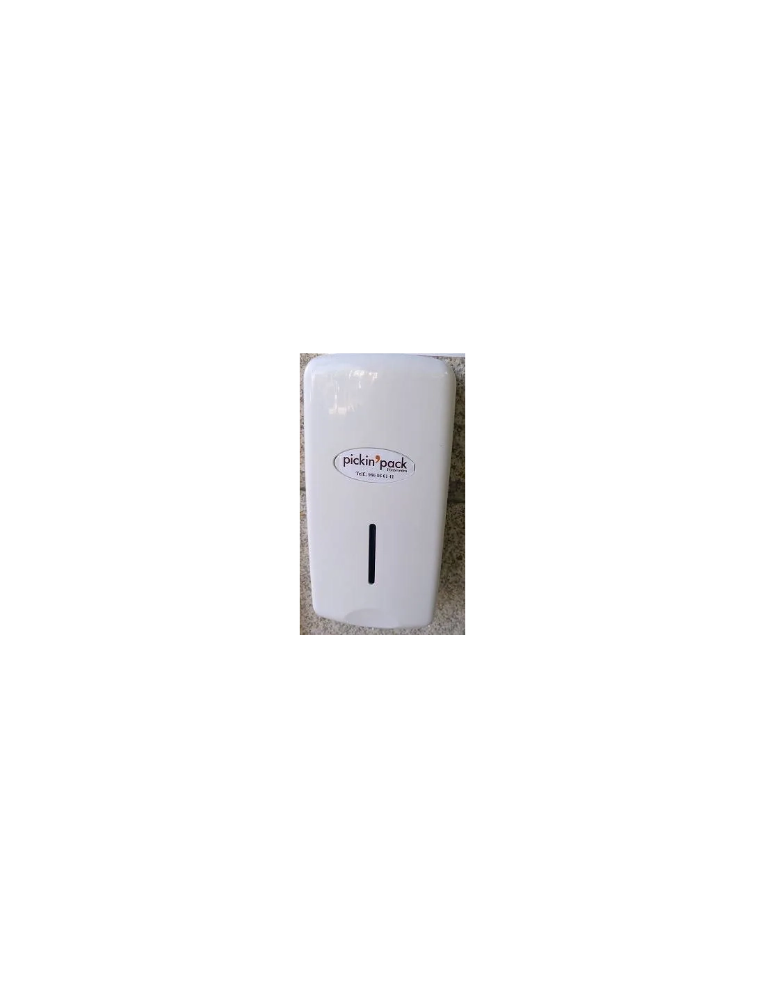 Dispensador de jabón fabricado en plástico ABS blanco, nivel carga visible. Capacidad 1 l.