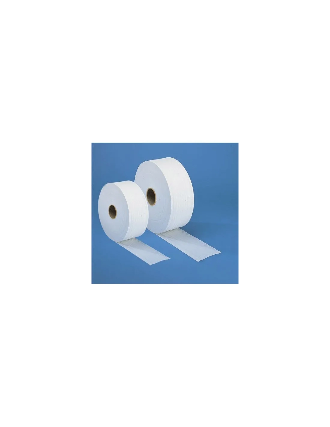 Guata de celulosa blanca, doble capa. Textura lisa. hojas precortadas. Mandril 5,5 cm. 380 m de largo, Maxi Jumbo.Caja 6 rollos papel wc jumbo JMB