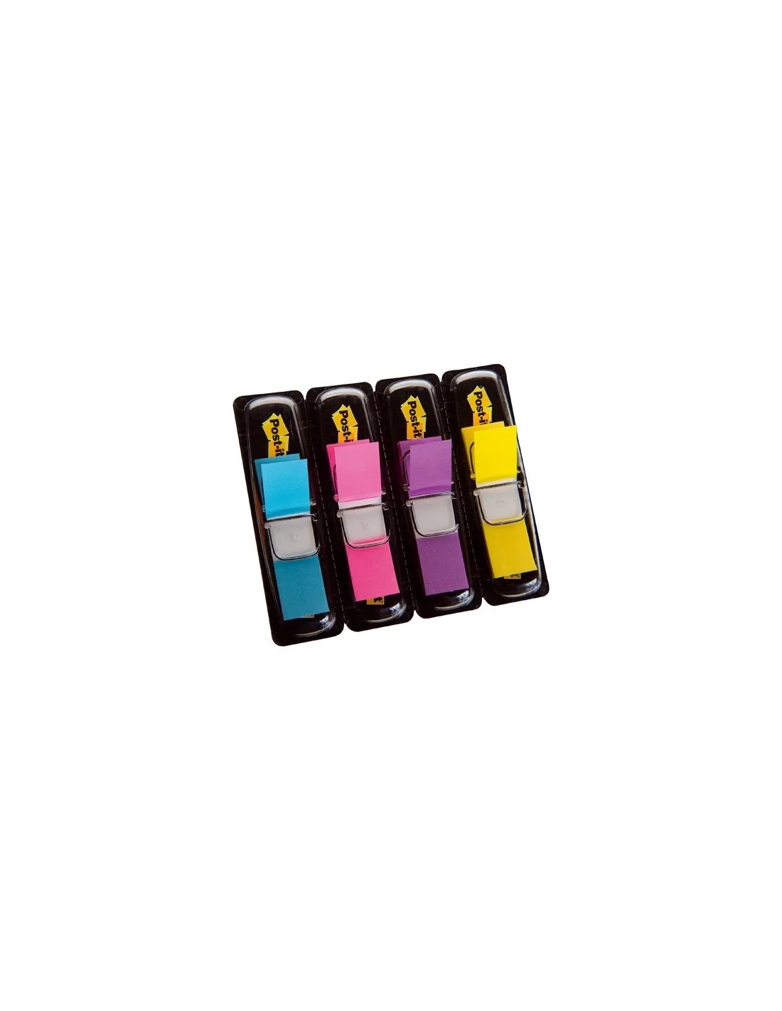 Marcapáginas de colores tamaño 12,7x43mm. Lote de 4 dipensadores de 35 index colores vivos (amarillo, violeta, rosa y azul)Banderitas marcapáginas Post-it® colores vivos