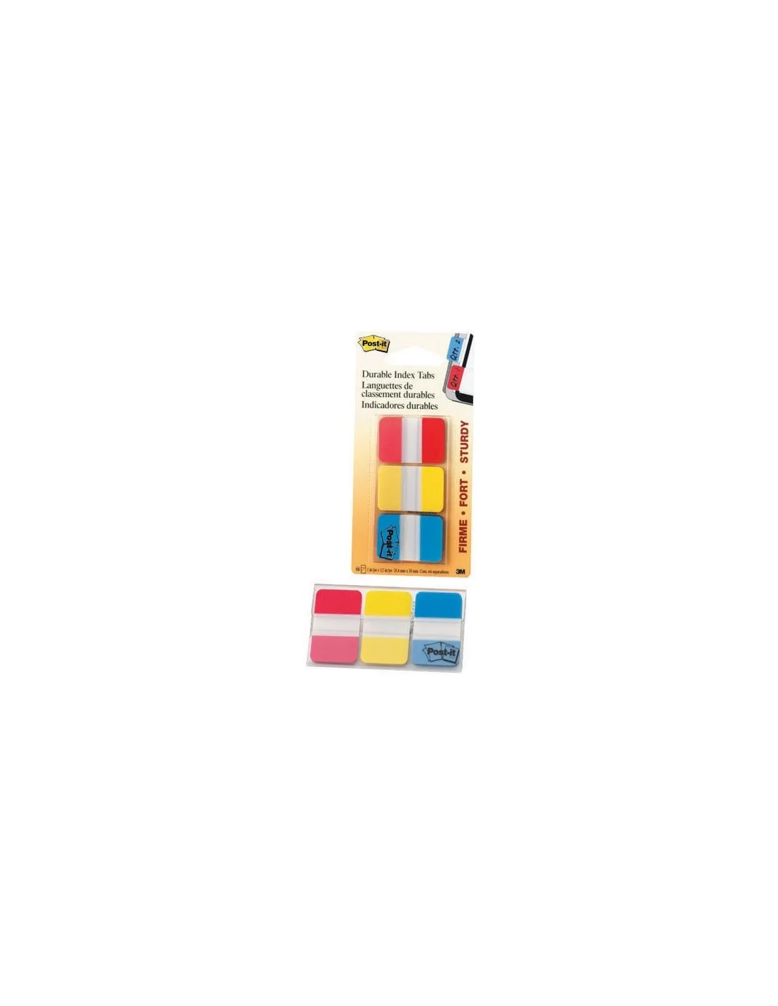 Post-it® Index mediano (1 pulgada). Extragruesos. No se arrugan ni doblan con el tiempo. Colores llamativos que resaltan la página. Colores: RYB rojo-amarillo-azul.Post-it® Index Rígidos rojo/amarillo/azul