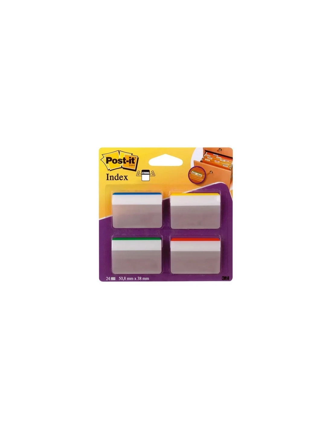 Post-it® Index mediano (2 pulgada). Extragruesos. No se arrugan ni doblan con el tiempo. Colores llamativos que resaltan la página. Colores: verde-azul-amarillo-rojo.Post-it® rigido para archivos