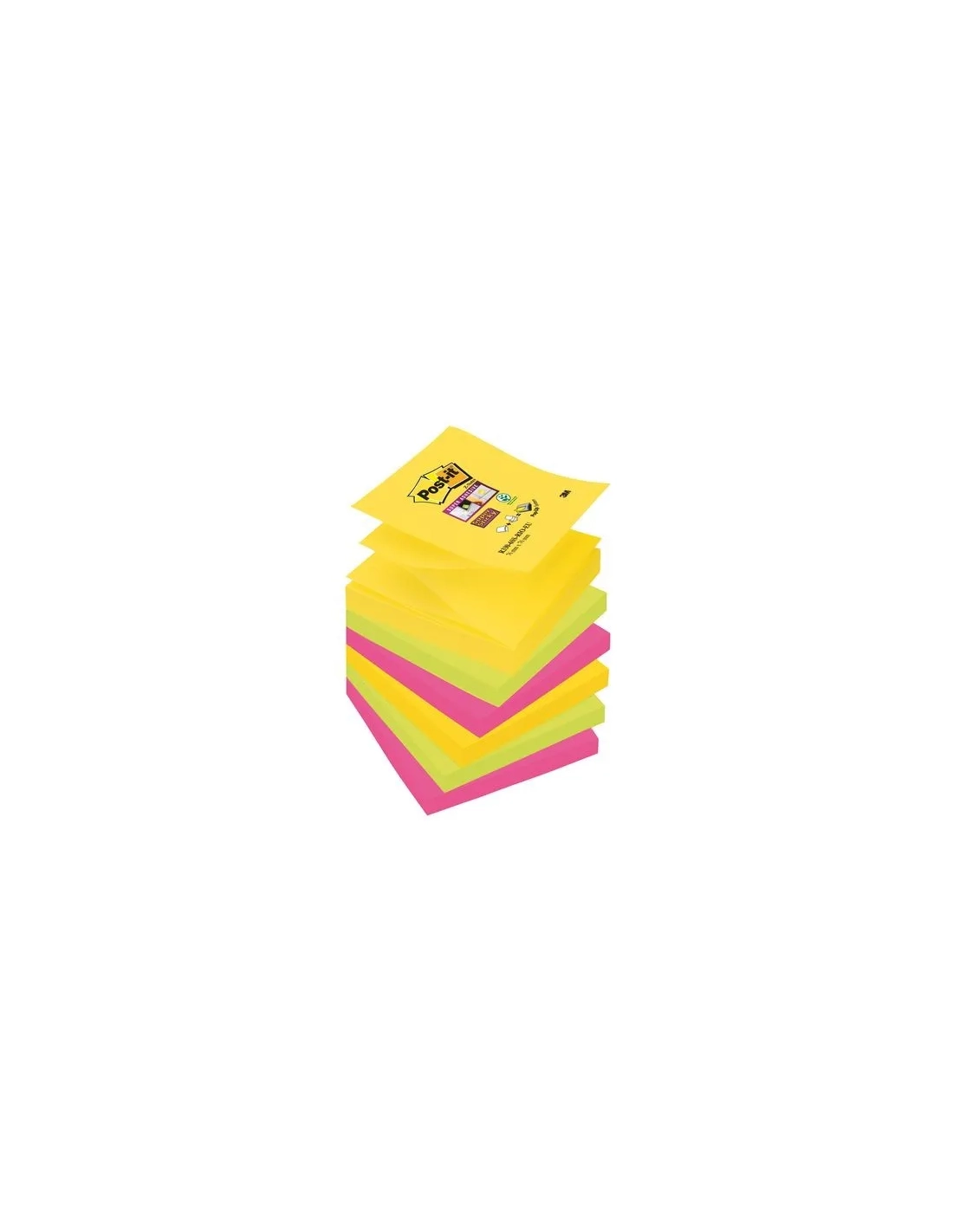 Bloc Pos It Z super sticky 76x76 Rio. Notas en zig zag super adhesivas. Surtido Río: amarillo neón. verde neón y fucsia. Formato 76 x76 mm. Bloc de 90 hojas.Notas en zig zag super adhesivas. Surtido Río: amarillo neón. verde neón y fucsia. Formato 76 x76 mm. Bloc de 90 hojas.