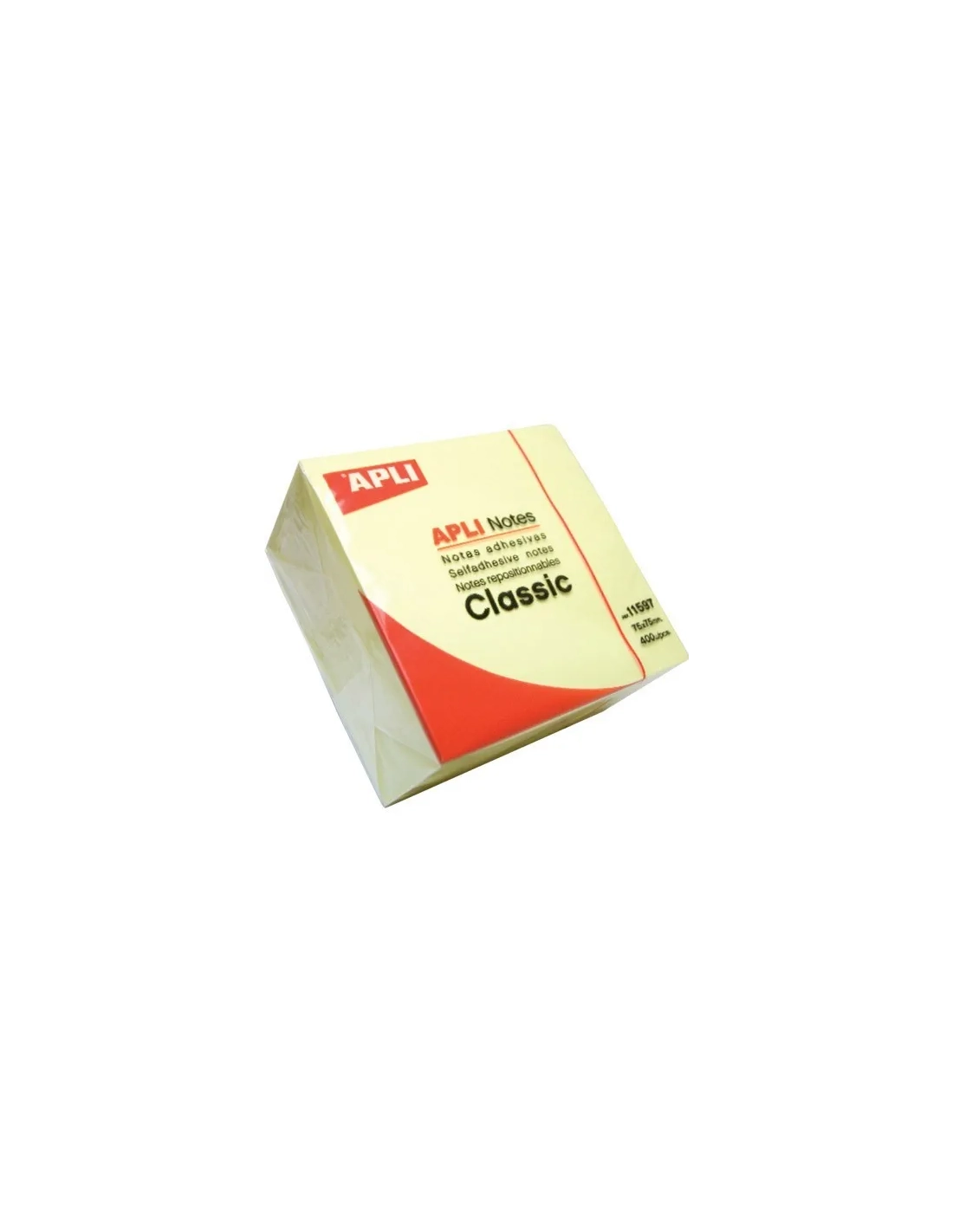 Cubo notas adhesivas Apli 75x75 400h amarillas
