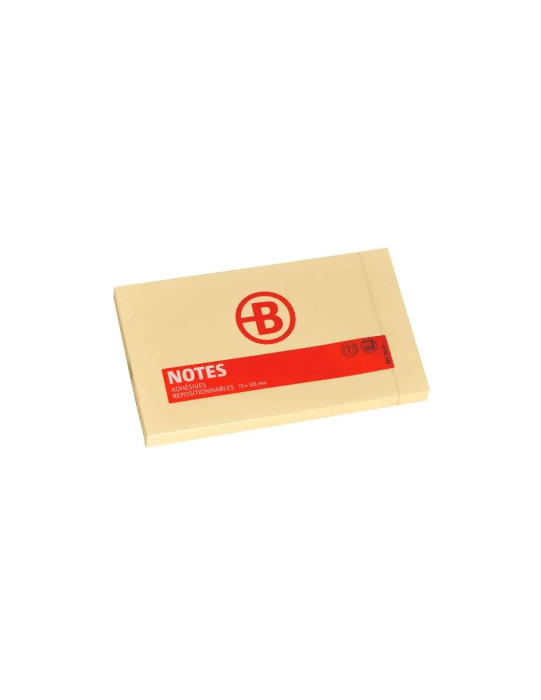 Bloc de hojas autoadhesivas removibles. Color amarillo. Medidas: 76 x 127 mm. UMV: Bloc de 100 hojas.