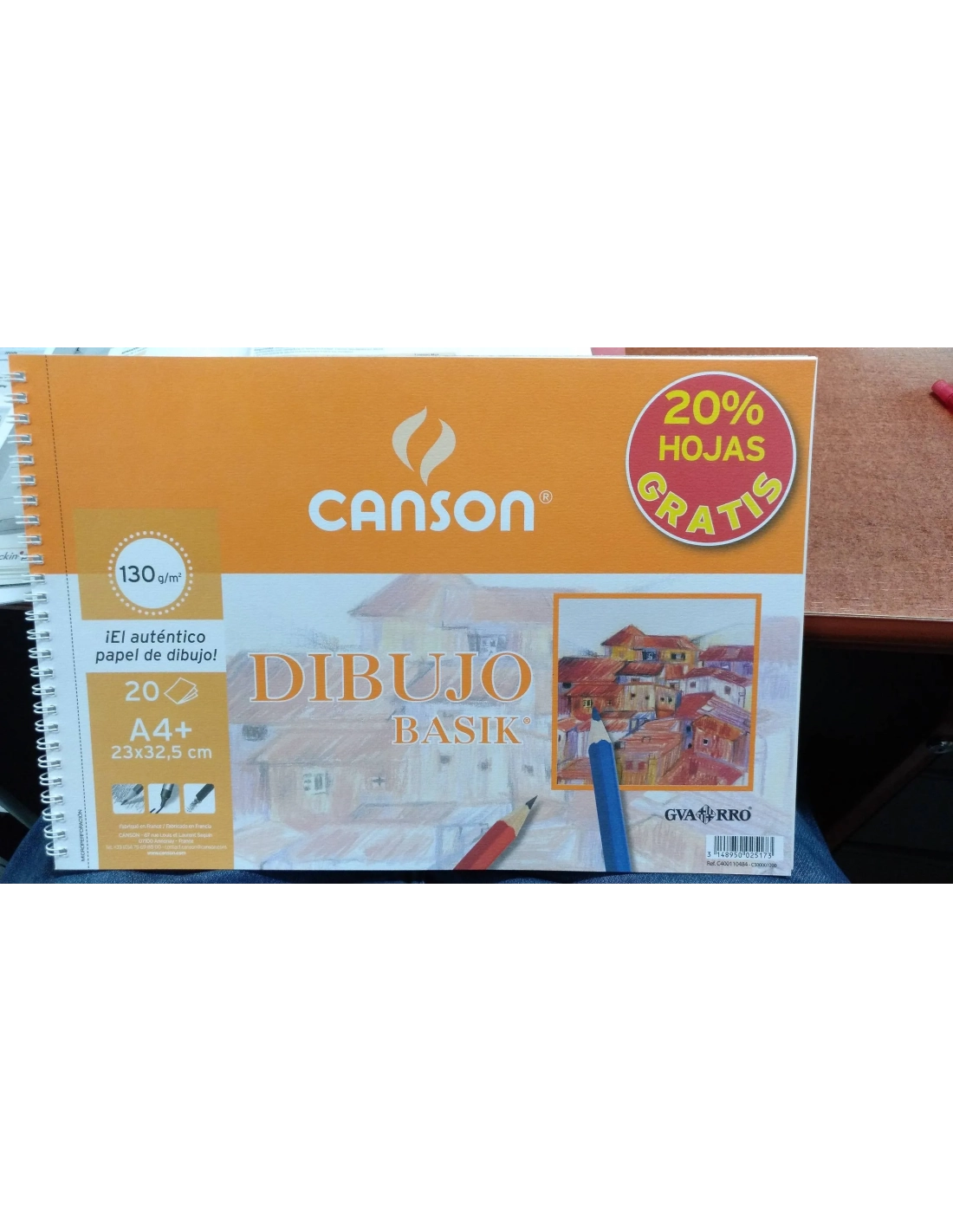 Block de dibujo Basik Canson tamaño A4 plus 230x325 mm 20 hojas +20% hojas gratis de 130 gramos ideal para dibujo.