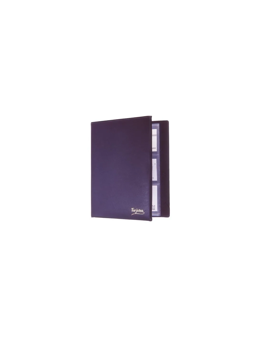 Con 4 anillas redondas de 25 mm de Ø. 10 fundas con tres compartimentos. Ampliable. Fabricado en PVC con cubiertas de goma espuma. Medidas: 232 x 187 x 38 mm.Tarjetero 4 anillas pvc