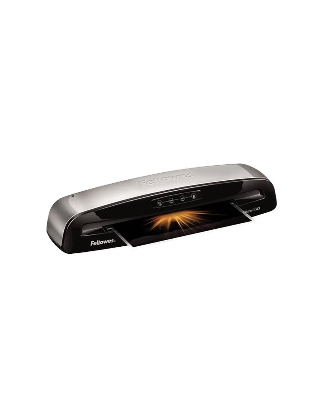 Ajuste único de temperatura. Sistema Heat Guard de doble aislamiento. Plastifica fotos. Para fundas de 80 y 125 micras. Velocidad de plastificación 35cm/min. Tiempo de calentamiento 5 min. Ancho de documento 330mm (A3). Dim 54 x 24 x 15cm, peso 3kgPlastificadora Fellowes Saturn 3i A