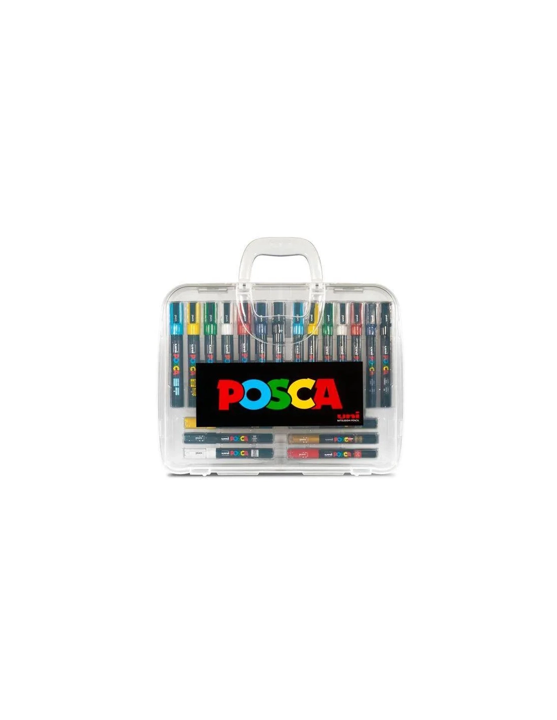 UNI BALLMarcador de pintura Posca maleta plástica con 20 rotuladores con trazos y colores surtidos