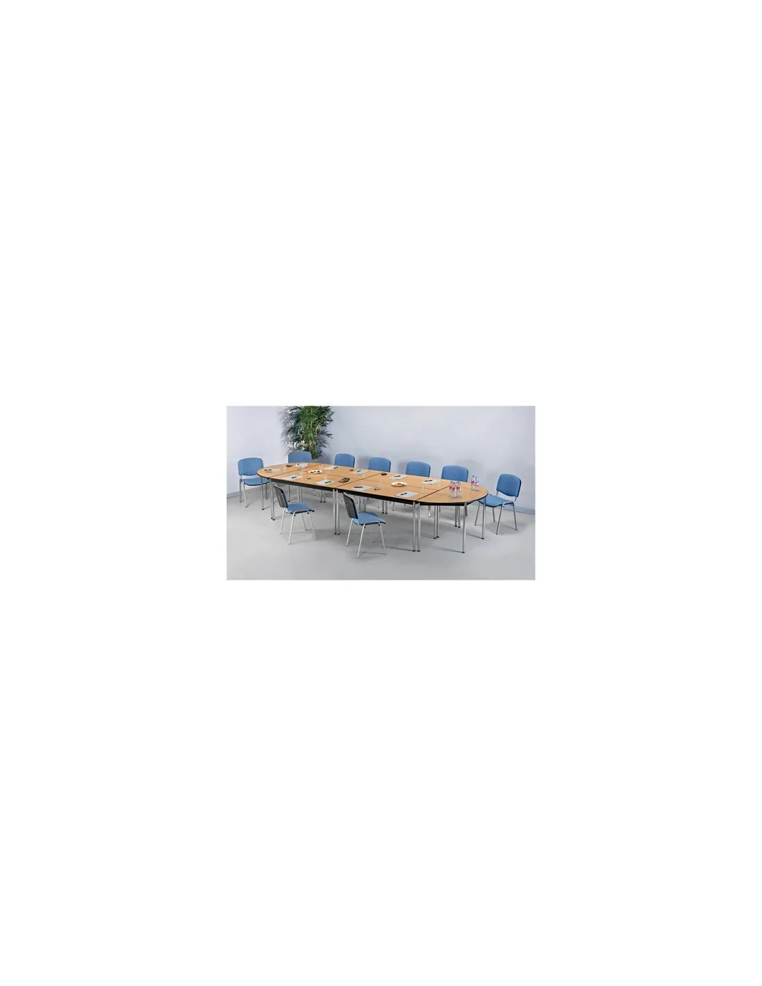 Tableros paneles particulas melaminadas grosor 19mm.Cantos PVC antichoque redondeados grosor 3 mm con borde que recubre el tablero.Patas y estructura metal lacado epoxi.Patas de tubo Ø32 mm.Calzos de regulación altura.Montaje facil.Dimensiones:Alt 75 x An 140 x Fon 70 cm.Mesa rectangular Confort haya 140x70 cm patas cromadas, se pueden relizar numerosas configuraciones