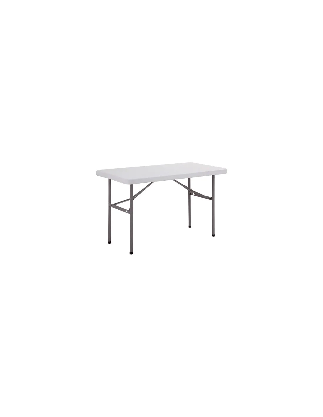 Facil limpieza y ultra resistente a los golpes y las rayaduras. Las patas se encastran en el tablero para que se apilen perfectamente. Estructura: Tablero polietileno alta densidad, grosor 50 mm, color blanco granulado. Patas plegables tubo metal lacado epoxi gris acabado granulado, Ø 28 mm. Barras longitudinales de refuerzo metal 30 x15 mm. Sistema de seguridad anti plegable de los pies por anillo corredero. Material tratado anti UV para evitar la degradación y la decoloración.Medidas: An 152 x fon 76 x Alt 74 cm. Peso:12,8 kg.