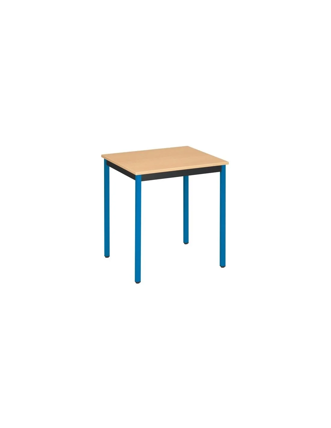 Alt.ura 74 cm. Calzos regulables en altura.Mesa de oficina multiuso Eco Tablero en color haya patas de colores. Tablero de partículas melaminadas, grosor 18mm. Cantos PVC.