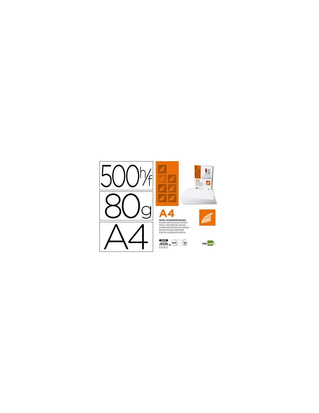 Papel liderpapel a4 80g/m2 paquete de 500 hojas blanco microperforado en dos partes iguales. |