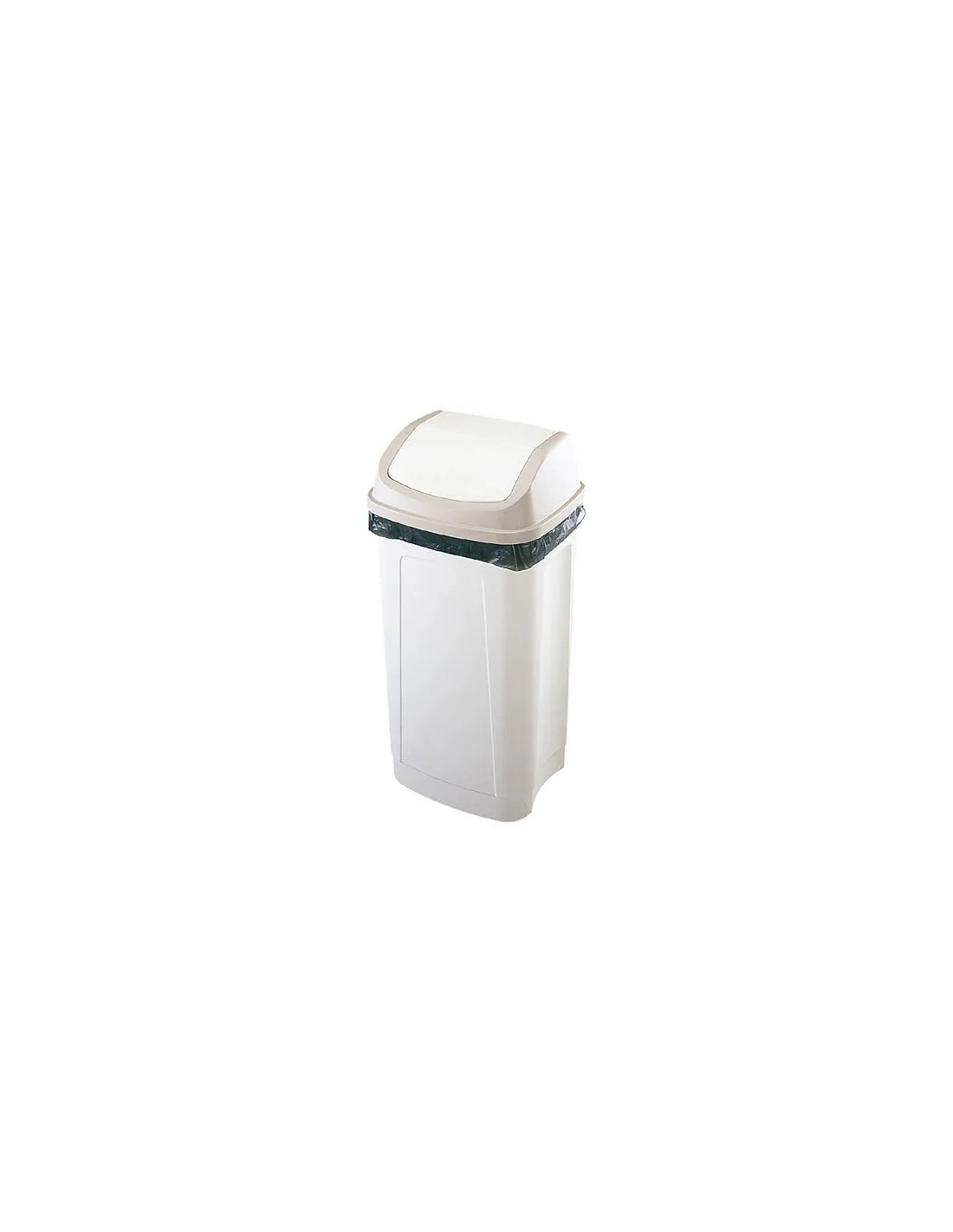 Polietileno beige ultra resistente. Asideros de agarre para facilitar el desplazamiento. La tapa puede mantenerse abierta. Capacidad 25 litros.Papeleras con tapa basculante 25l