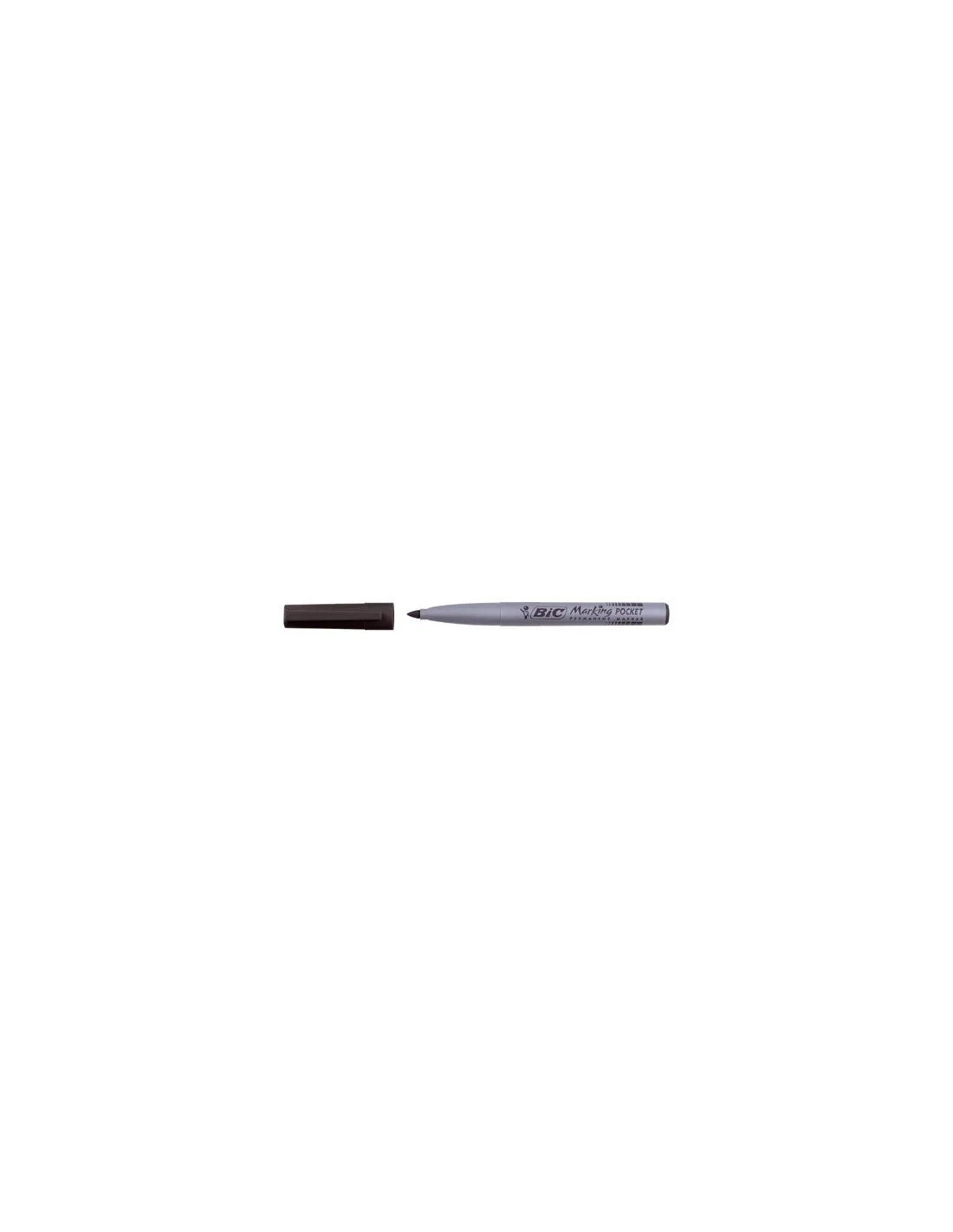 El más barato. Tinta indeleble base alcohol . resistencia a la luz, al calor y a la intemperie. Punta ojival. Modelo de bolsillo grosor de trazo 1 mm. Negro.Marcador Bic bolsillo 1mm negro