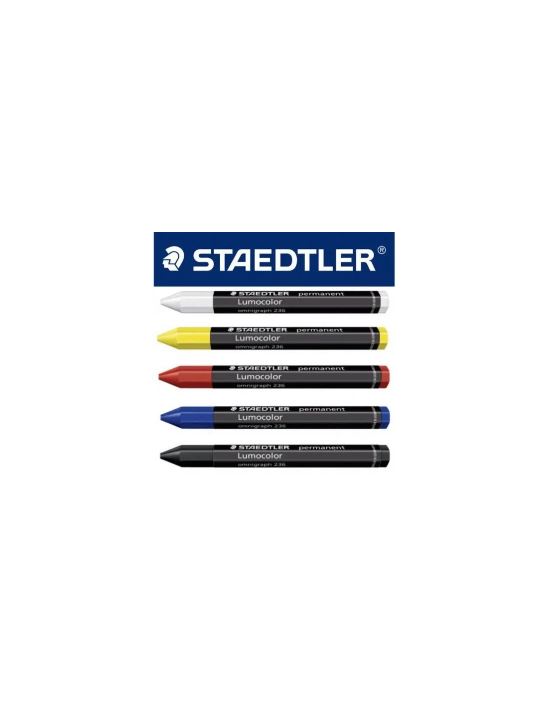 Ceras hexagonales, especiales para marcar sobre cualquier superficie, también sobre metal y madera mojada, resistente al borrado y al agua, barra de 113mm de largo x 12mm diámetro.Caja 12 ceras lumocolor omnigraph 236 rojo
