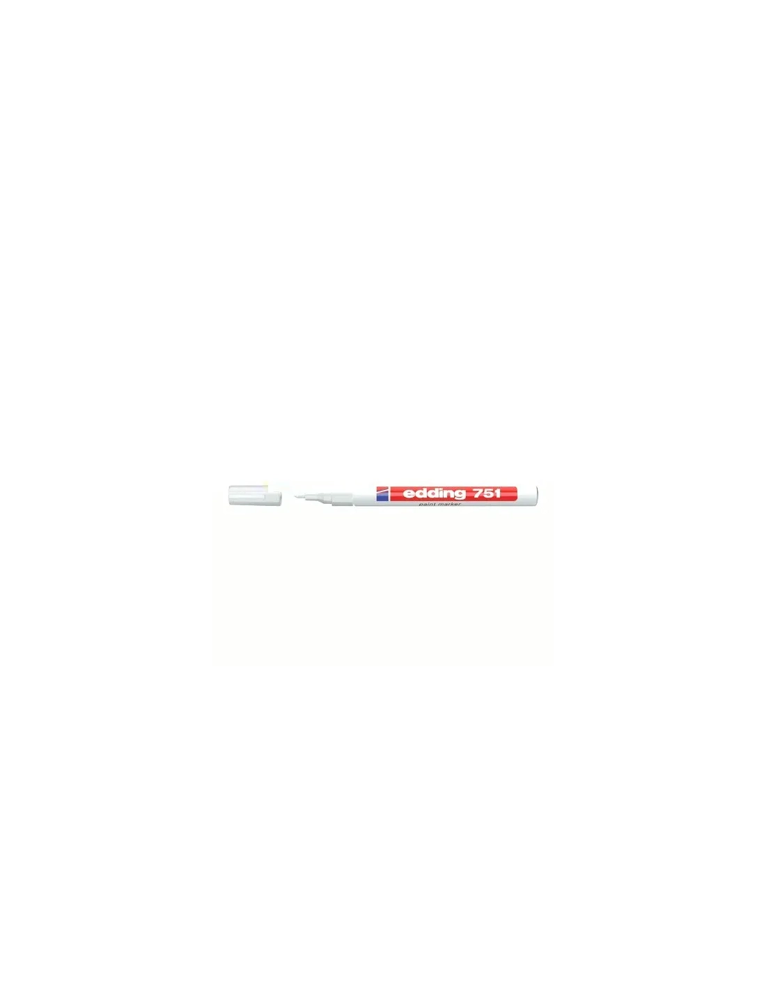 Marcadores de tinta opaca, para casi todo tipo de materiales. Casi sin olor y sin adición de xileno y/o tolueno. Efecto lacado muy cubriente. resistentes al agua. Secado rápido. Punta redonda. Escritura de 1-2 mm. Blanco.Marcador permanente Edding 751 blanco