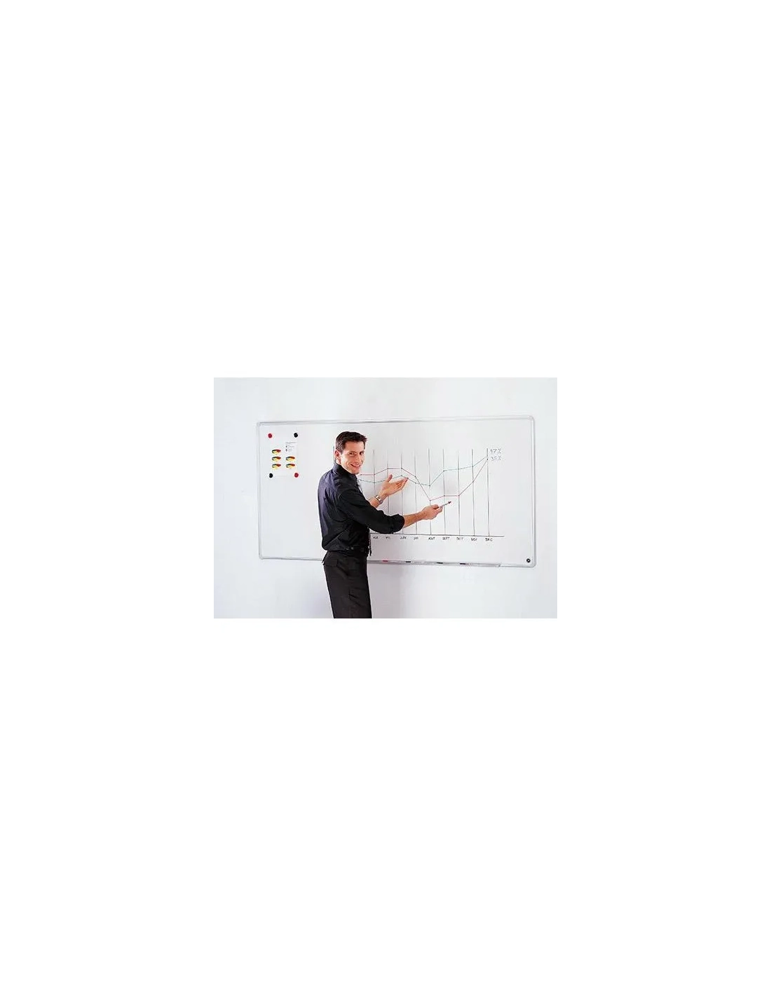 PICKING PACKPizarra blanca con marco de aluminio anodizado natural, chapa de acero esmaltado recocido al horno a 800 º de temperatura. es un muy buen soporte de presentación, formación y reunión, tanto en clase como en la oficina. Esta pizarra blanca de acero esmaltado permite el uso de imanes en su superficie para poder colgar notas y con su superficie blanca puedes escribir gracias a rotuladores borrables en seco . Esta pizarra tiene un marco de aluminio anodizado natural muy resistente con un toque estético. Las esquinas tienen agujeros ya hechos para facilitar la fijación del producto y embellecedores que permiten esconder los tornillos. Se puede fijar en horizontal o vertical ( La tornillería está incluida) y puedes enganchar la bandeja porta accesorios fácilmente para colocar tus rotuladores o tu borrador.