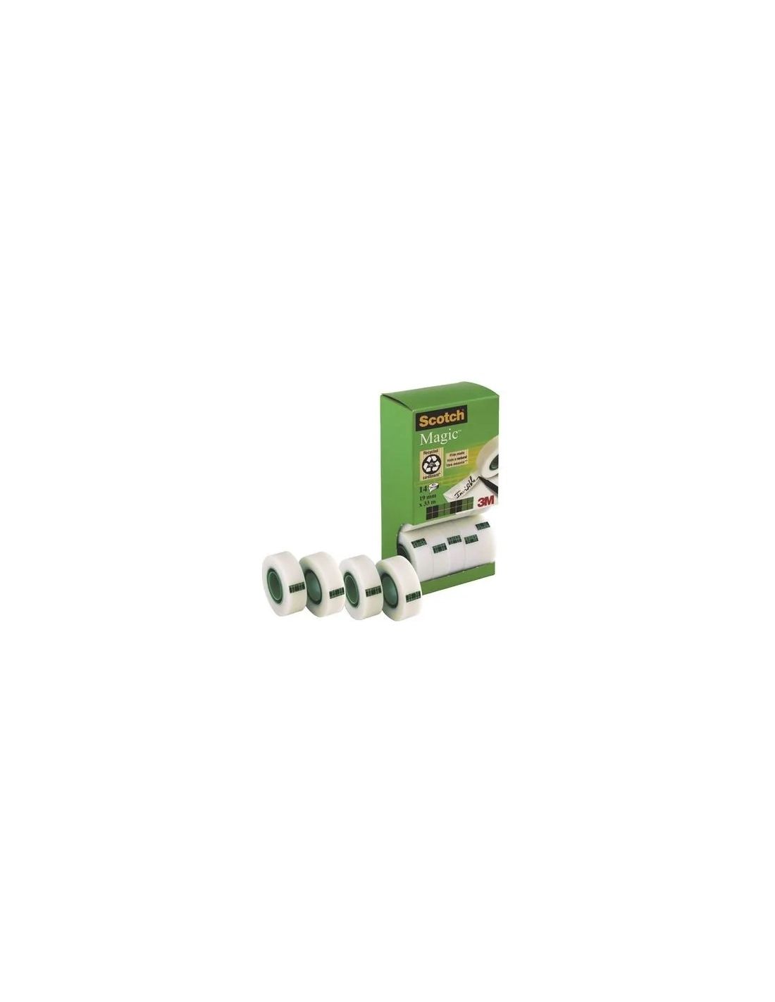 Pack ahorro de 12 + 2 rollos GRATIS deCinta adhesiva Scotch® Magic invisible. Dimensiones: 19 mm x 33 m. Para reparar documentos, unir páginas, maquetar documentos para fotocopiar…... Invisible tras su aplicación incluso al fotocopiar. No amarillea, no se despega y no transfiere el adhesivo con el paso del tiempo. Excelente envejecimiento. Fácil de desenrollar, cortar y manejar. Se puede escribir sobre ella. Película fabricada con recursos de fibra natural.Pack 14 cintas scotch magic 12+