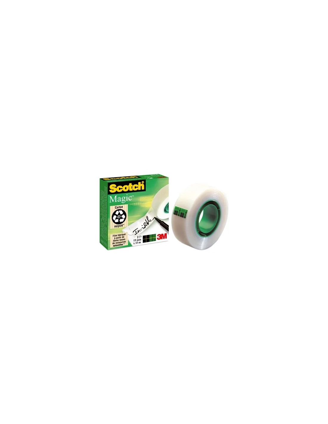 Cinta adhesiva Scotch® Magic invisible. Dimensiones: 19 mm x 33 m. Para reparar documentos, unir páginas, maquetar documentos para fotocopiar…... Invisible tras su aplicación incluso al fotocopiar. No amarillea, no se despega y no transfiere el adhesivo con el paso del tiempo. Excelente envejecimiento. Fácil de desenrollar, cortar y manejar. Se puede escribir sobre ella. Película fabricada con recursos de fibra natural.Cinta adhesiva Scotch® Magic invisible. Dimensiones: 19 mm x 33 m. Para reparar documentos, unir páginas, maquetar documentos para fotocopiar…... Invisible tras su aplicación incluso al fotocopiar