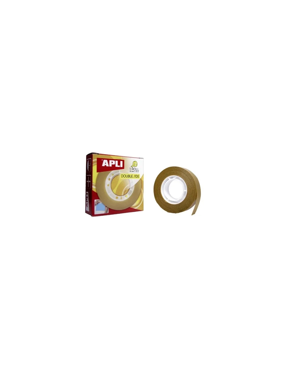 Cinta de polipropileno con adhesivo sintético y papel siliconado marrón. Ideal en el hogar para colocar posters, en la oficina o comercio, para colocar carteles, folletos, etc. Gran adhesión por ambas caras, sobre cualquier superficie. 15 mm x 10 m.Cinta adhesiva Apli doble cara 10mmx15m